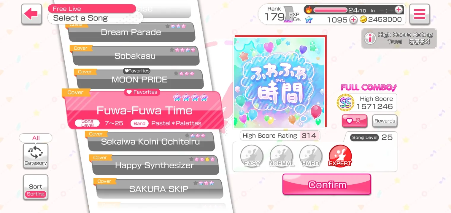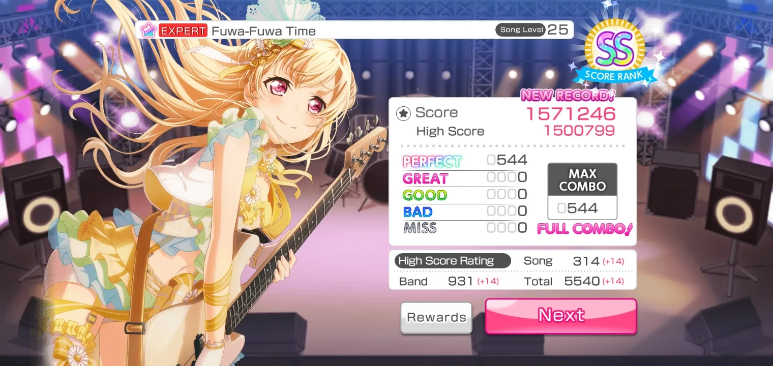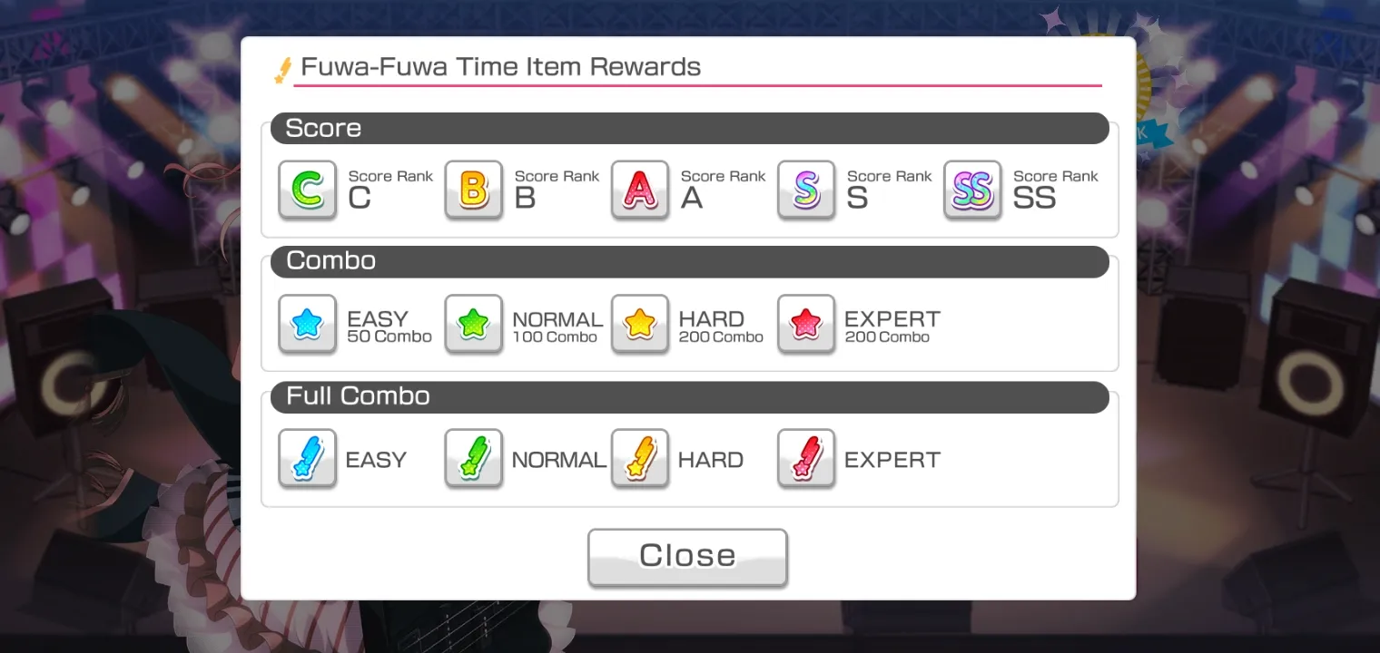 Oh iya, hasil dari tingkat kesulitan berbeda-beda dalam satu lagu yaitu Fuwa-Fuwa Time dari Pastel*Palletes adalah sebagai berikut.