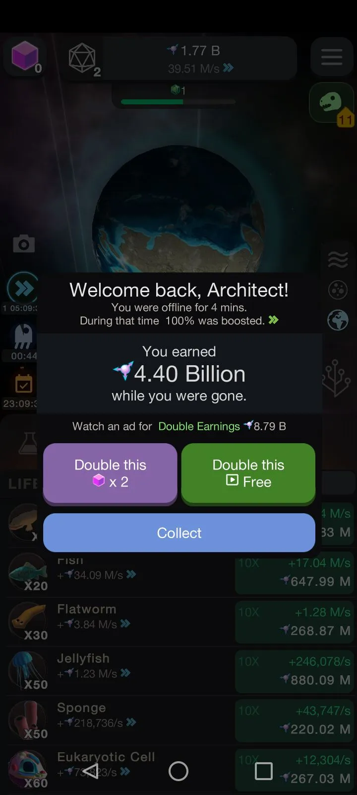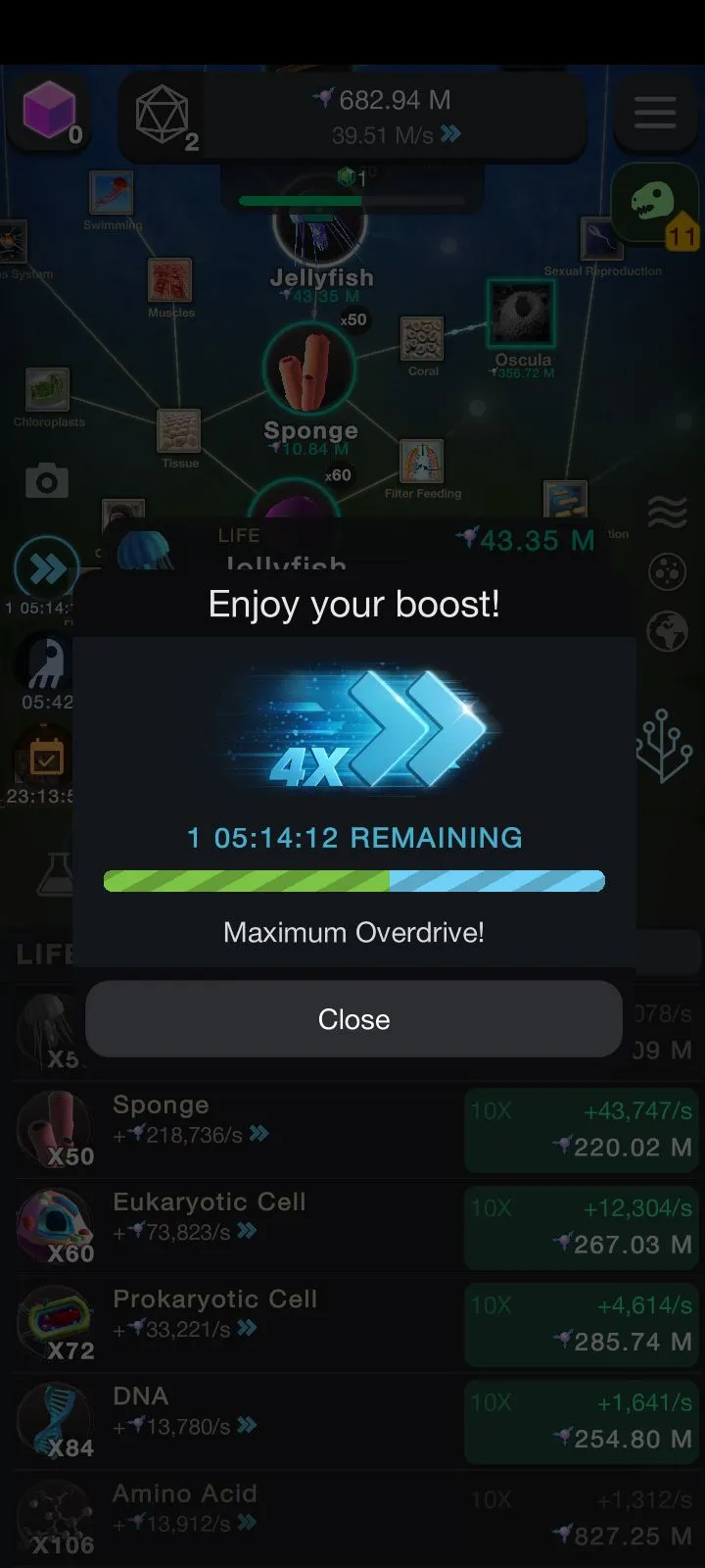 Very free-to-play, Just watching ads to get Maximum Overdrive, and you can got double Idle rewards from watching ads too. but if you have some money, just go buy Darwinium Stone, its really helpful for supporting the developer.