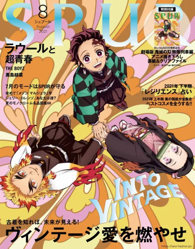 In the August issue of "MAQUIA", the cover features Tanjiro, Nezuko and Rengoku surrounded by flowers, who also appear in the August issue of "SPUR".