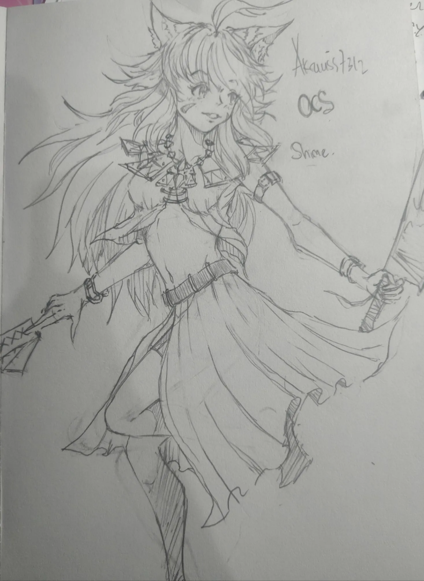 so yea theres another gojō request, random sketches n my special ocs named Shime..(it has lotsa meaning in her name especially when i created her..., also shes my first female ocs really its been years since i first created her a bit of a back story i draw her after watching raising of shield hero when i saw raphtalia n some other reason..well... in the pic i upload theres an old version n remake version of it but i guess this is the first time i post her here....