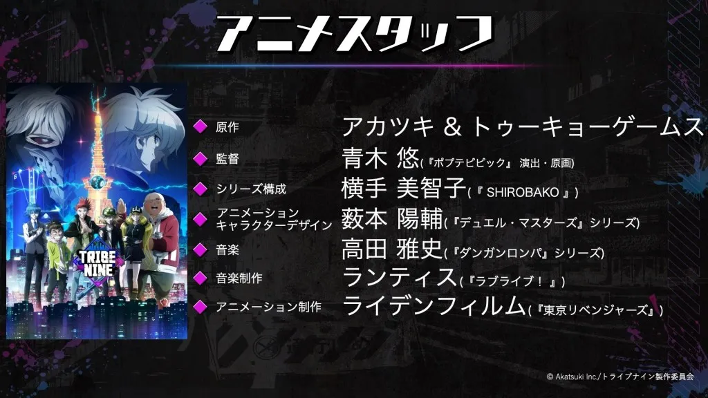 Too Kyo Games y Akatsuki anunciaron que el proyecto Tribe Nine recibirá un juego para teléfonos inteligentes y un anime televisivo durante una transmisión en vivo en el Tokyo Game Show 2021 el 30 de septiembre.