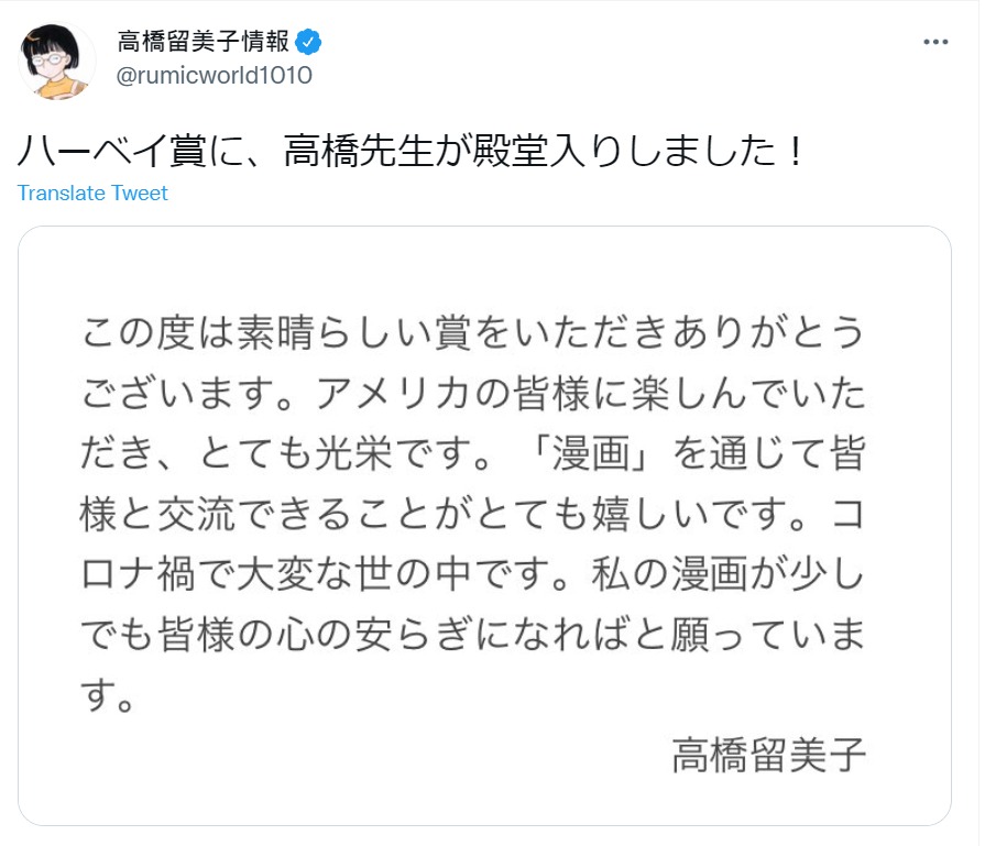 Congrats To Takahashi Rumiko San
