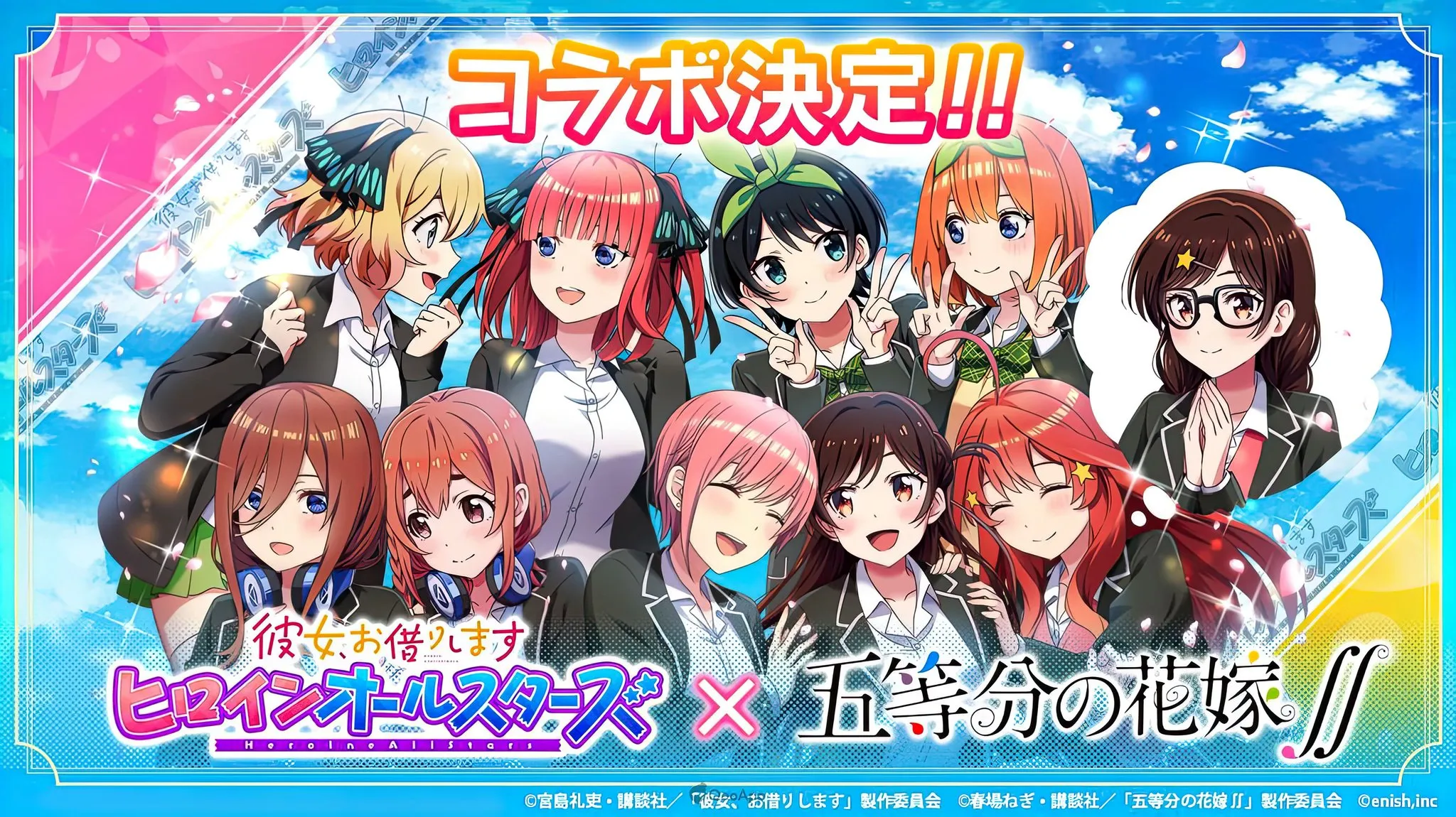 El juego móvil Rent-a-Girlfriend: Heroine All Stars de enish anunció una colaboración con The Quintessential Quintuplets a partir del 1 de noviembre.