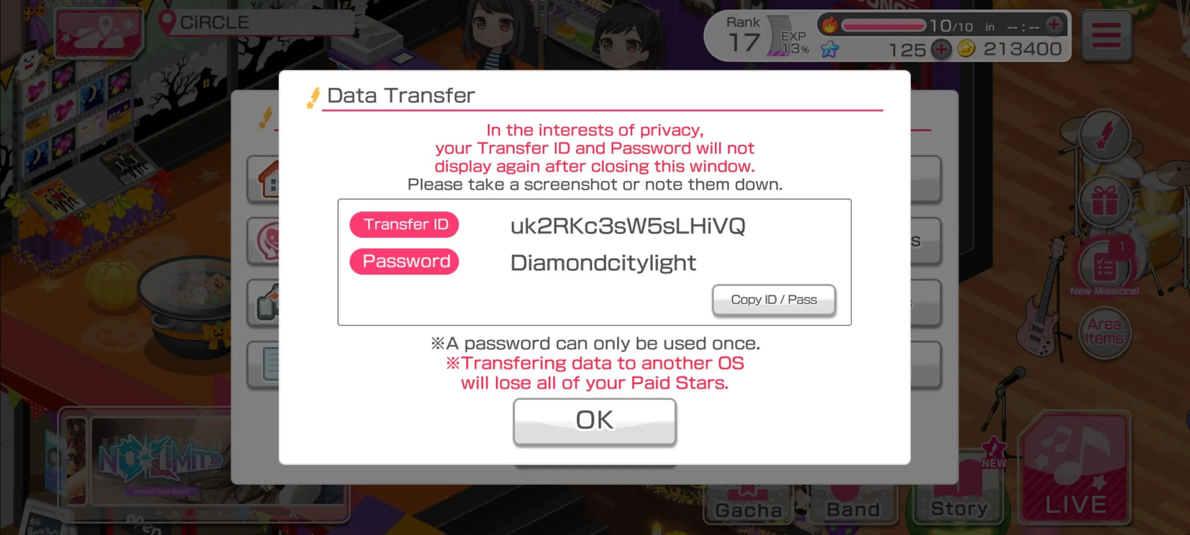 Voy a eliminar el juego de mi celular por la simple razon de que me ocupa espacio y nunca le agarre un vicio como para querer jugarlo todos los dias, a quien le interese la cuenta, es libre de quedarsela, les dejo caotura de las miembros que tiene junto con el ID y la clave
