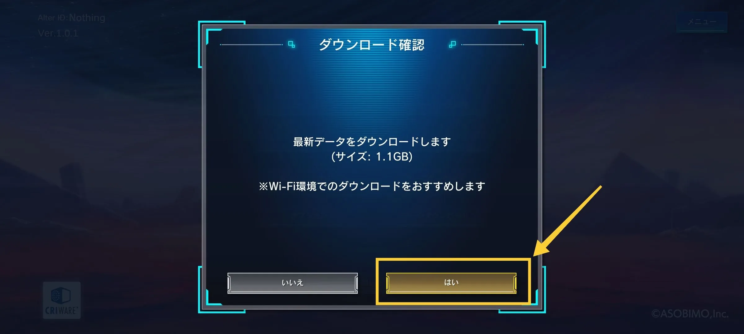 3. A download prompt (1.1 GB) will appear, tap the right option for "yes"