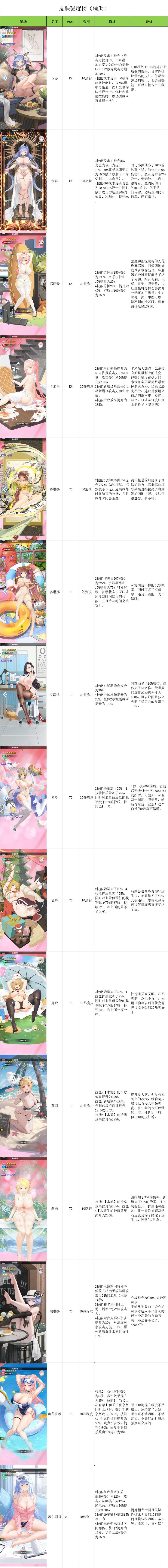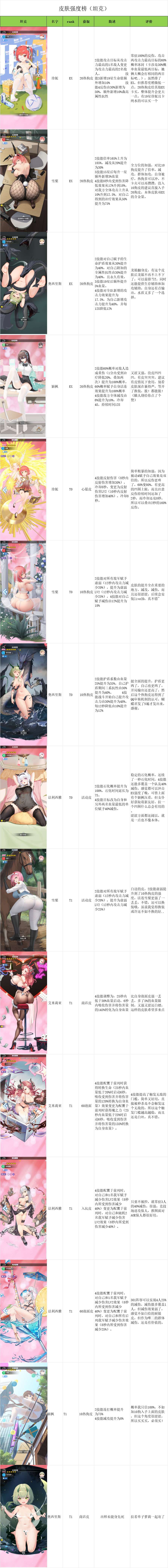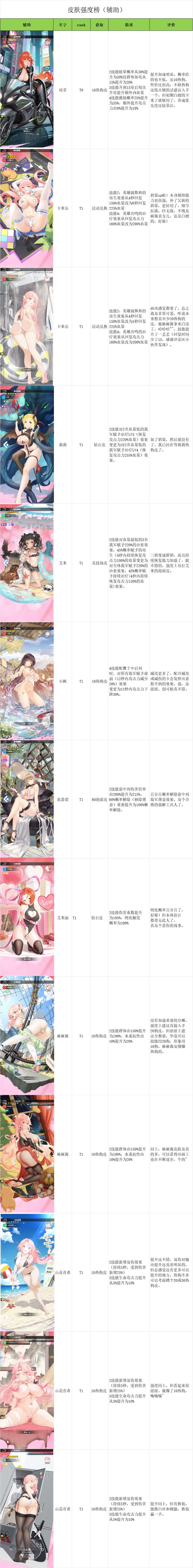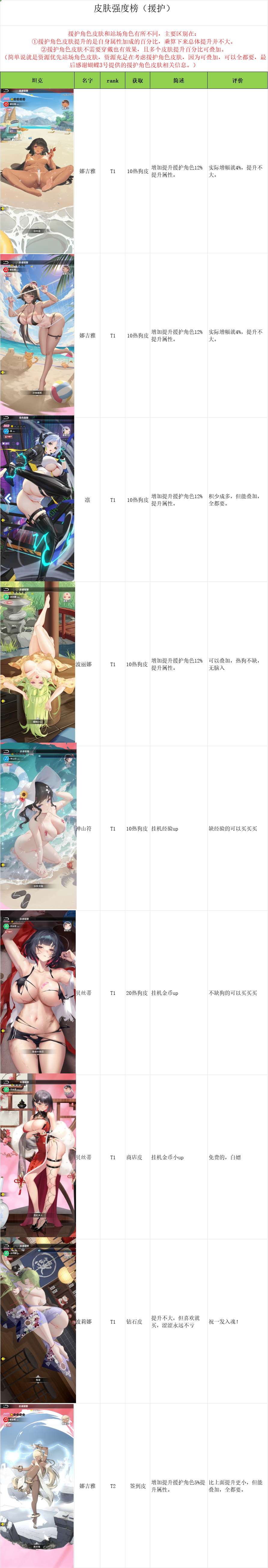 之前攻略笔记里有人留言想看一份皮肤的强度榜,后来攻略组里欧狗大佬又聊起这个想法,拖来拖去,想想后面皮肤越多就越不想动,就决定今天花一下午时间完成这个皮肤榜,感谢群友提供的皮肤图,感谢名单见文末尾。(摆烂停更中)