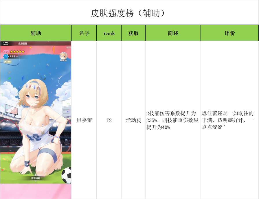 4.援护角色皮肤榜