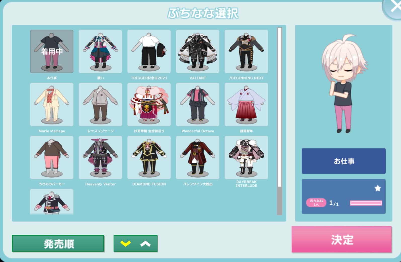 ﹡要開始讓偶像工作時可以點選迷你角色來更換衣服喔!!(以下是示範圖)