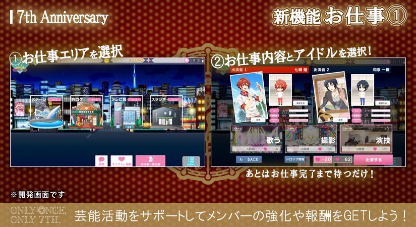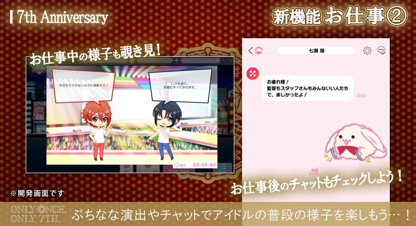 偶像工作中可去點選偷窺他們,透過迷你偶像演出和Chat來確認偶像工作結束的狀態喔