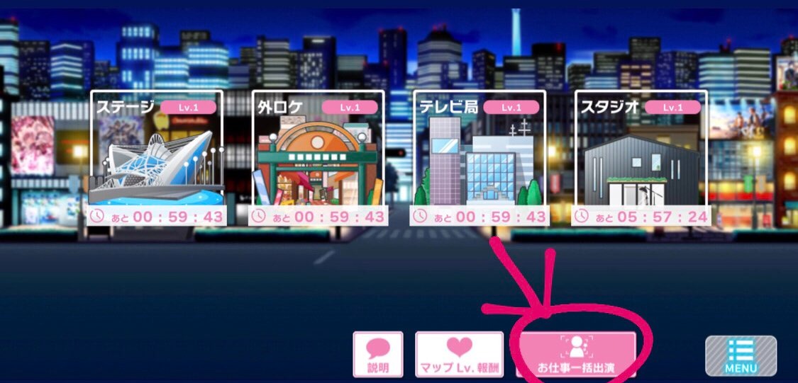 ﹡另外也可以點選工作的頁面右下角,可以一起讓偶像工作(就不需要一個個點擊囉!!)