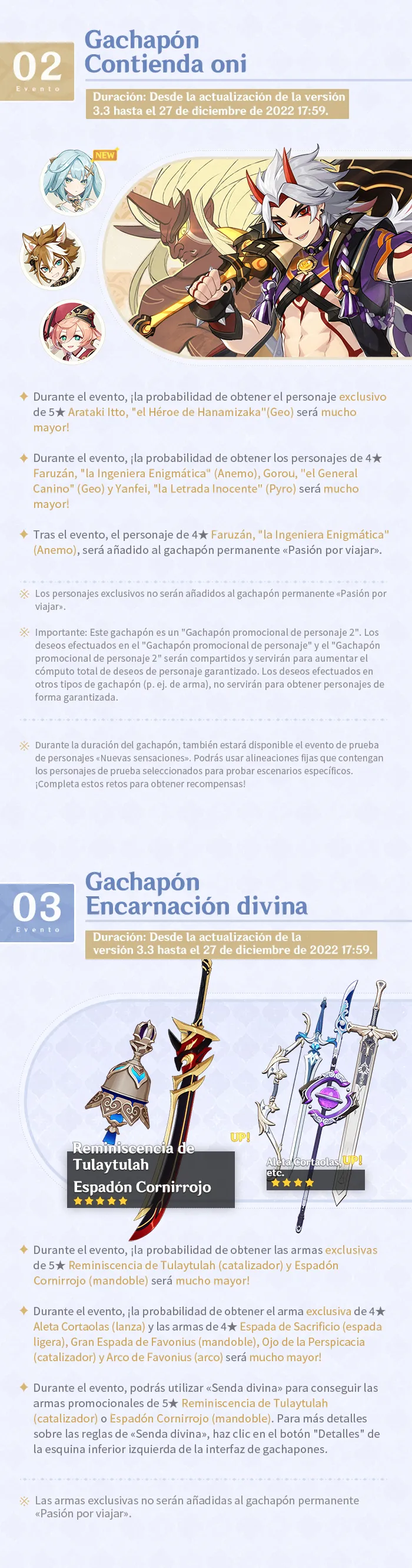 [Genshin Impact] Eventos de la versión 3.3 (I)