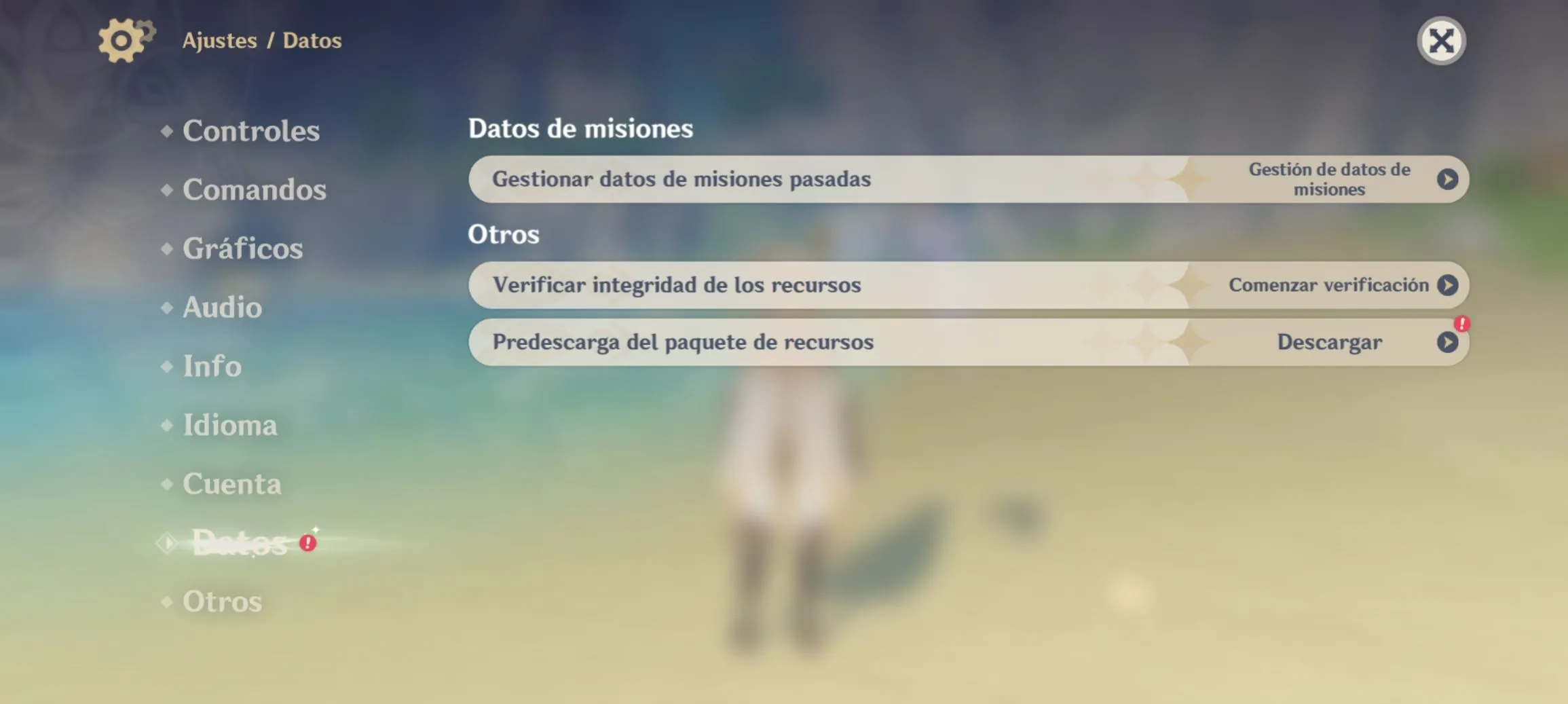 Modo 1: Dentro del juego, haz clic en el ícono de Paimon - Ajustes - Datos - Predescarga del paquete de recursos, y empieza la descarga inmediatamente.