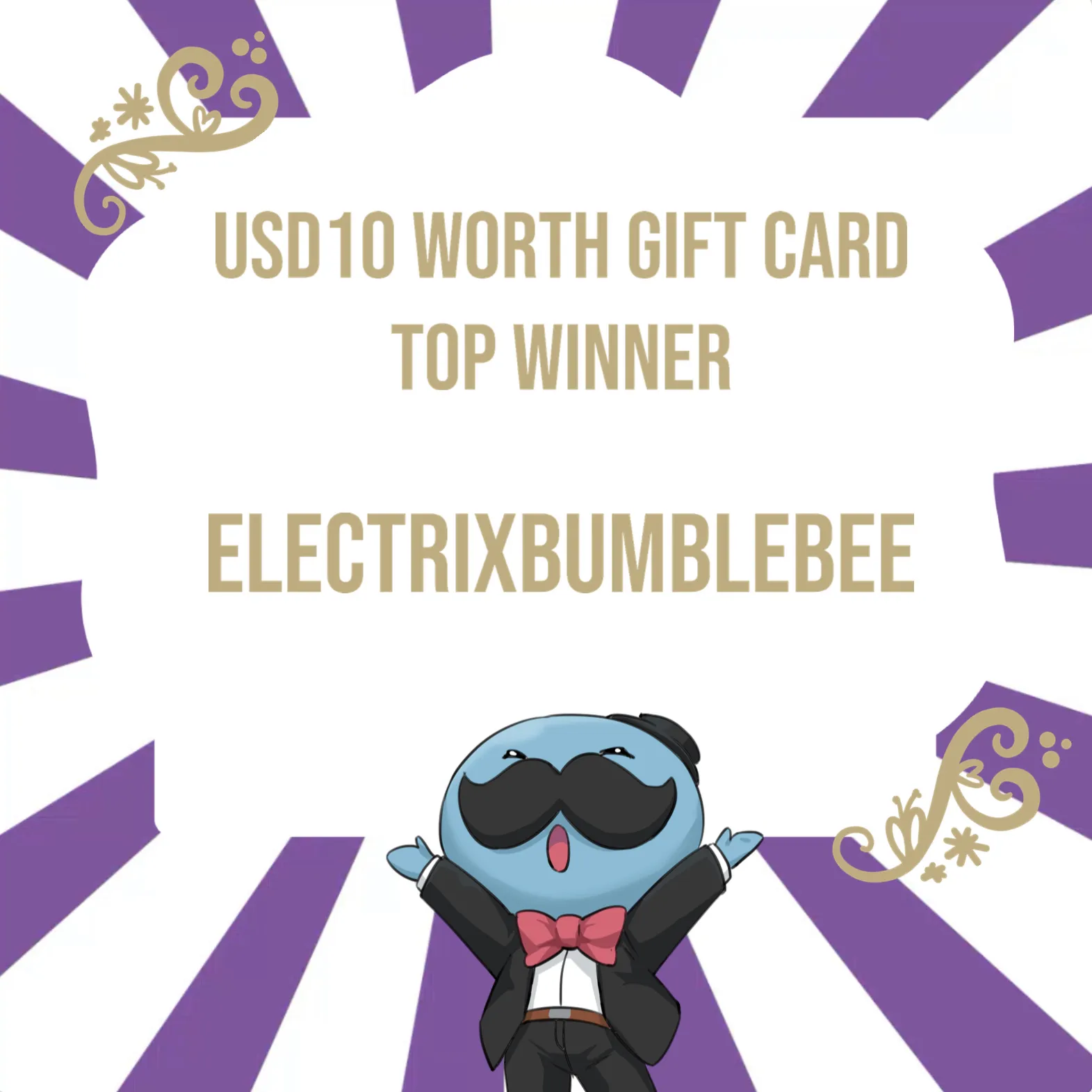 Now, our TOP WINNER who is super lucky winning our US$10 worth Gift Card is: