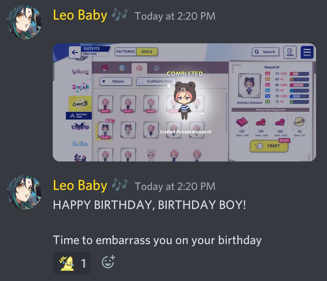I have a gift for you! I made you these clothes. Since it's your birthday, you'll have the liberty to wear Costume lll for the first time!