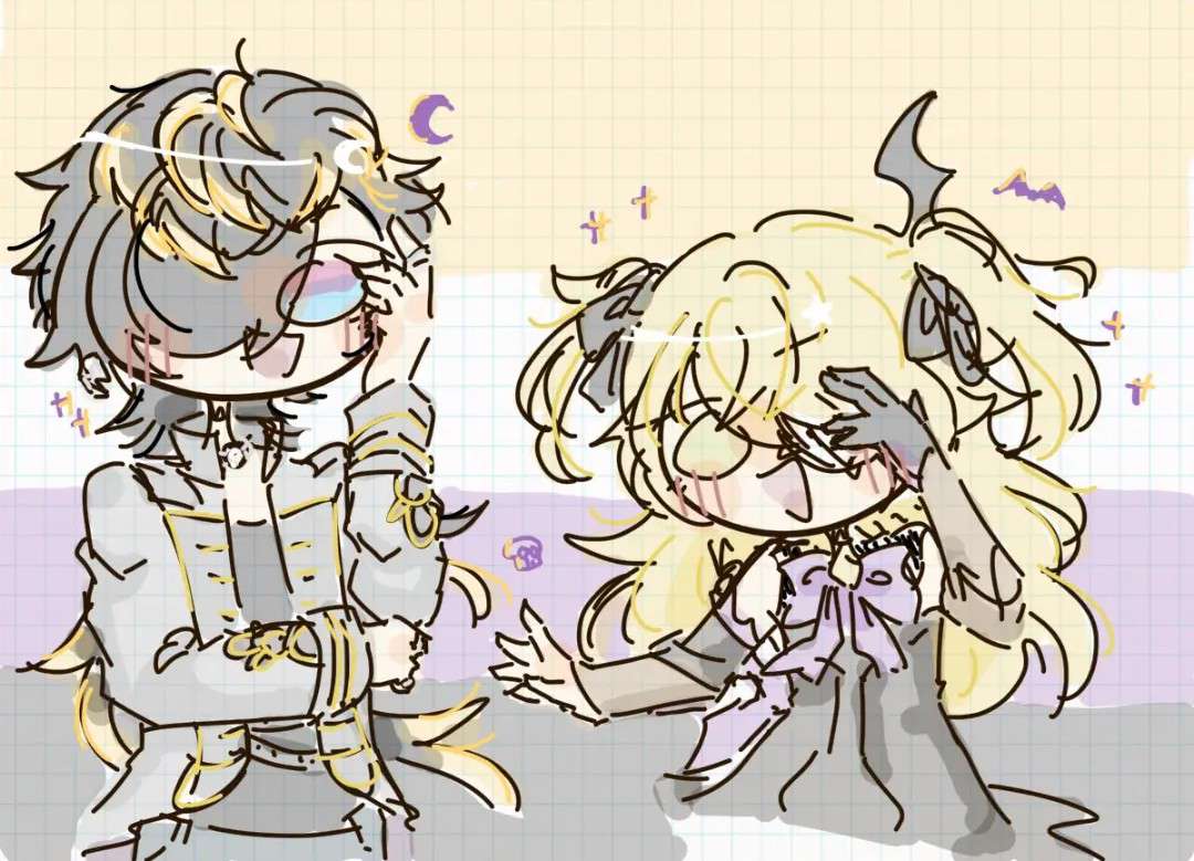 ah yes enby flag behind jyushi and fischl