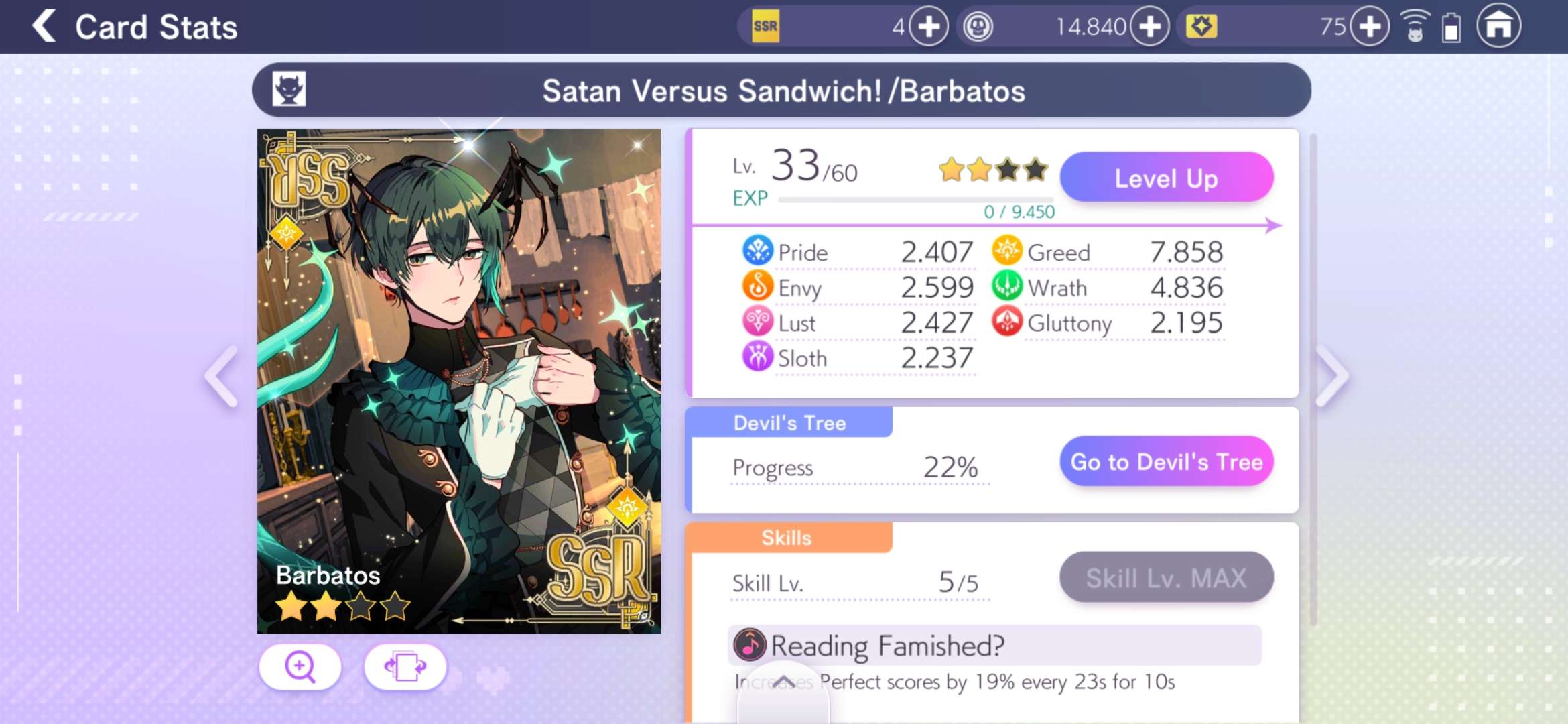 xElindrax 2023-05-03 03:05 Notes(532) wasted 1400 DP :( got Barbatos another 4 times an Diavolo 2 times.... really wanted the Levi UR+ card....