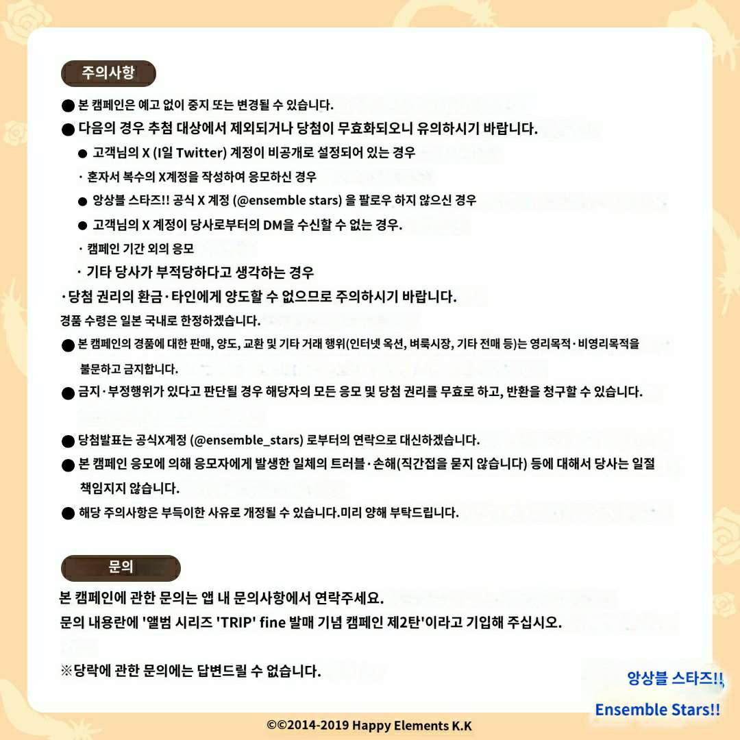 이번 【 #アルバムシリーズTRIP fine 발매 기념 캠페인 🕊️ 】 캠페인 참가할때 몇가지 주의 사항! ※번역본