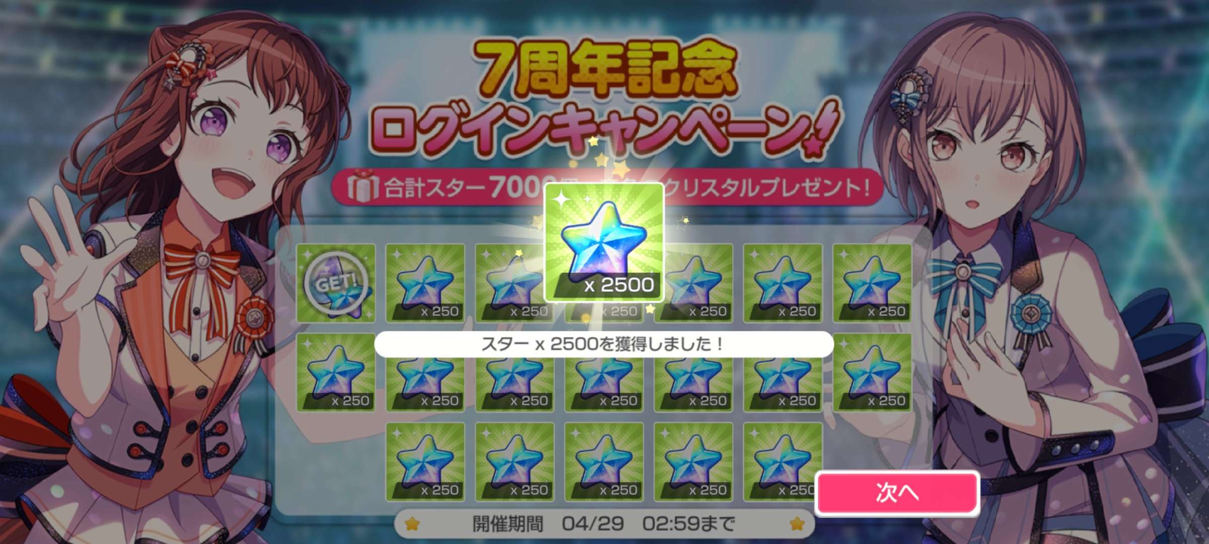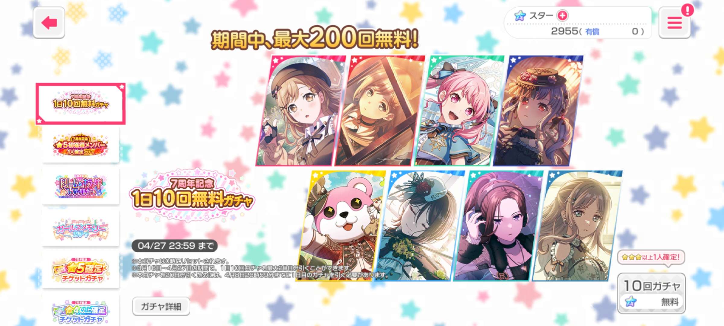Bang dream jp is celebrating their 7th anniversary today with login gift and gacha up to 200(10 pulls daily)