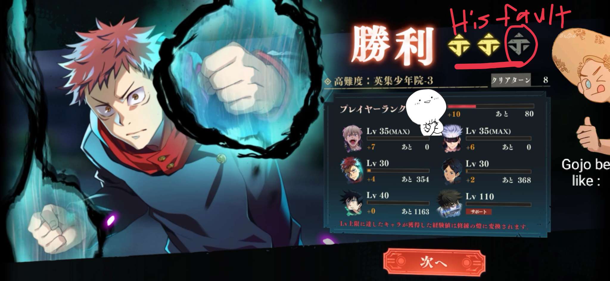 Never left Gojo unuse his Hollow Purple or he bails for no good reasons from your team.