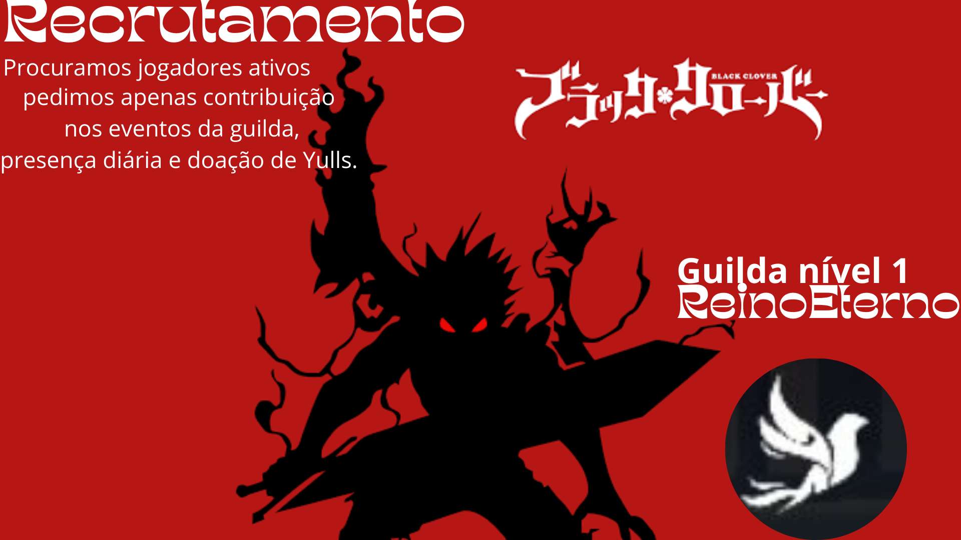 Salve rapaziada tudo bem com vocês estou procurando membros para minha guilda mas estou a procura de jogadores ativos e que ajudem a guilda e que queiram fazer amizade