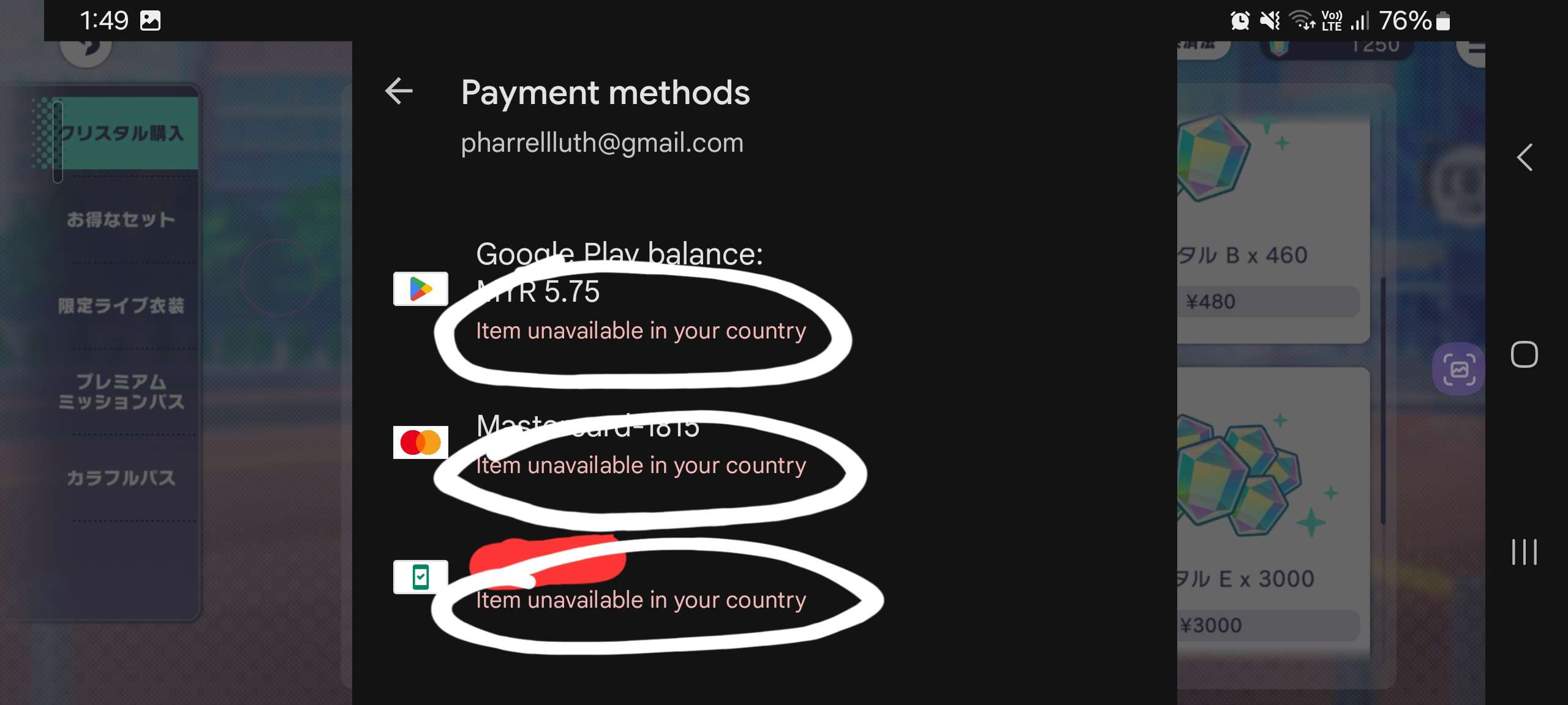 does anyone know how to make payments on Prosekai? When I try to purchase gems, it says that the item is unavailable in your country. Does anyone know how to purchase it? It'll be appreciated if someone guides me and gives me tutorial videos on how to do this. ![[大哭]](/cdn/img/transparent.png)