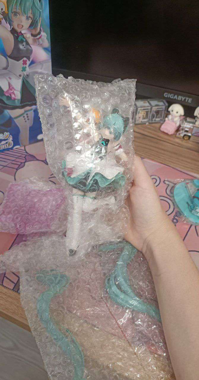 В целом качеством и фигурок и стендиков очень довольна, фигурка за свою цену прям имба (суммарно на неё ушло с доставками и коммисиями ~3,6к, вроде). Фигурка упакована была хорошо, коробка в идеальном состоянии в плане уголков, но есть небольшая помятость на одной из сторон (постараюсь перепаковать так же идеально)