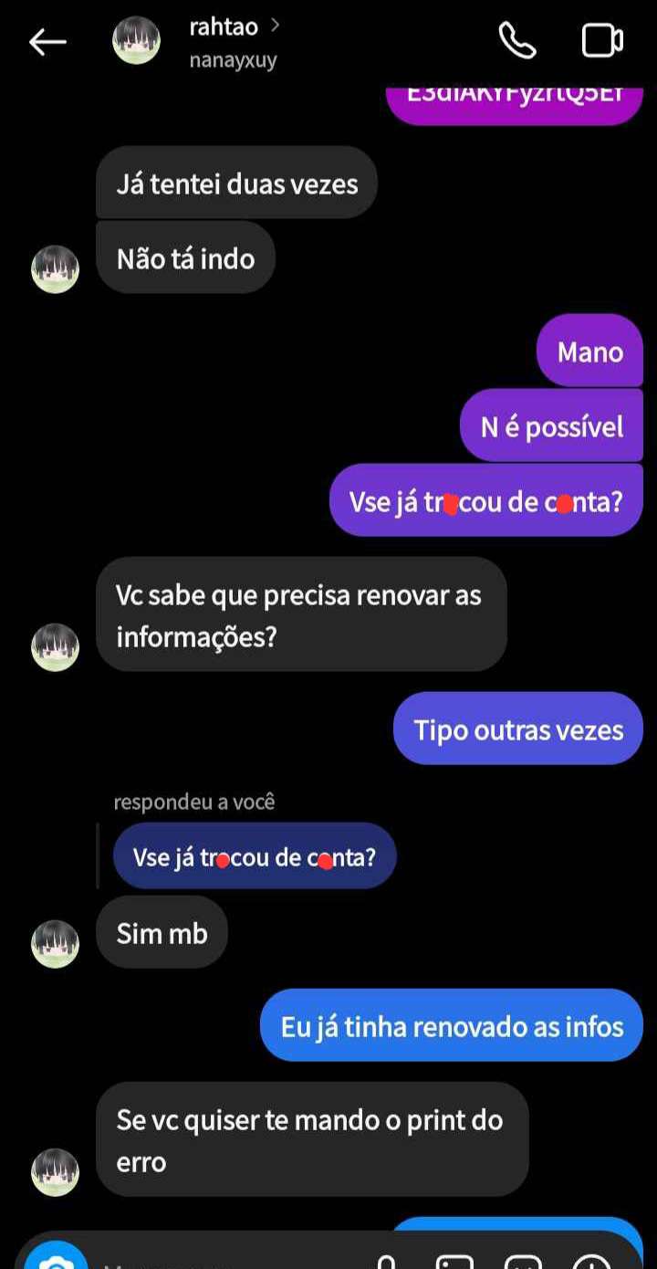 E agora apareceu, no Ig, rɔưɓăɲðɔ uma pessoa, falando que o Ið da cɔɲtą estava inválido, o que é uma mentira.