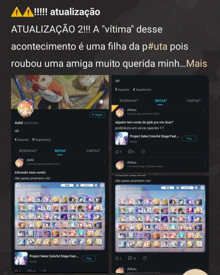 Á um tempo atrás ele apareceu com o pjsekai da menina.