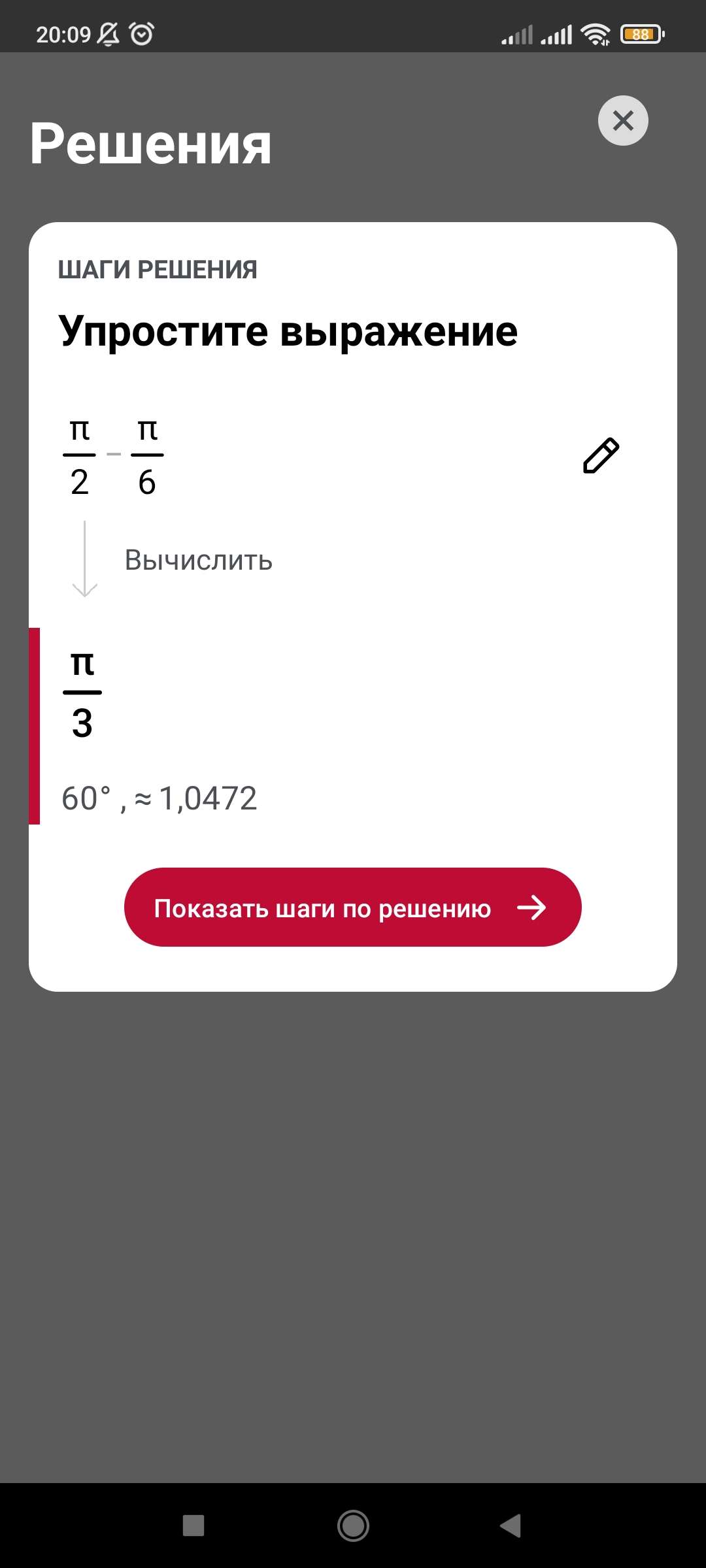 указательный - 60°, что π/3