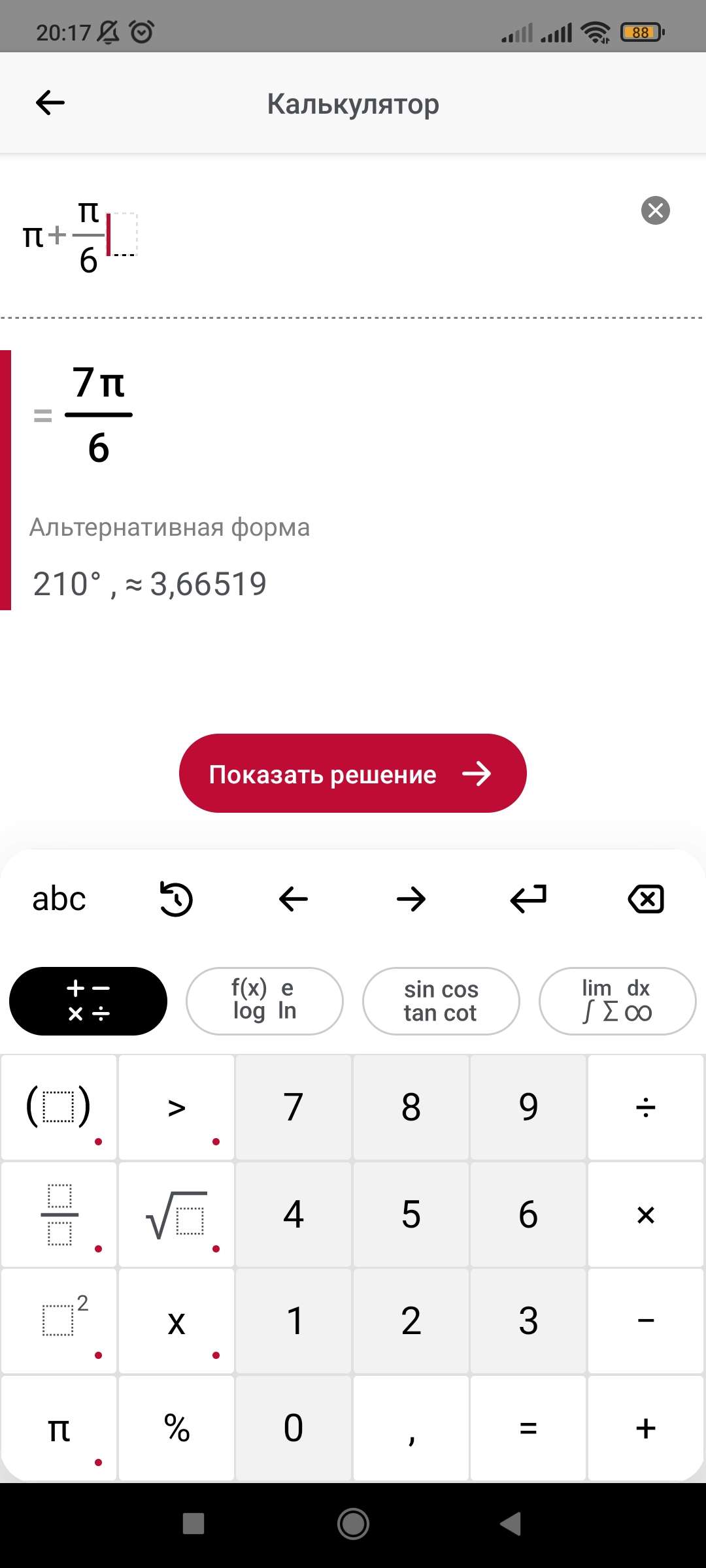 сложить две дроби, наверное, сами сумеете, не бойтесь этого π ничо с ним не будет