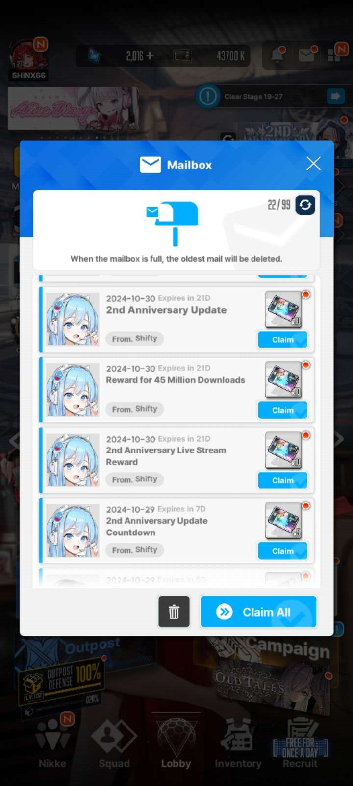 Shien 66 2024-11-02 13:21 Notes(212) Muchas tiradas, el mejor aniversario y nuevas NIKKEs... Suerte a todos!!!
