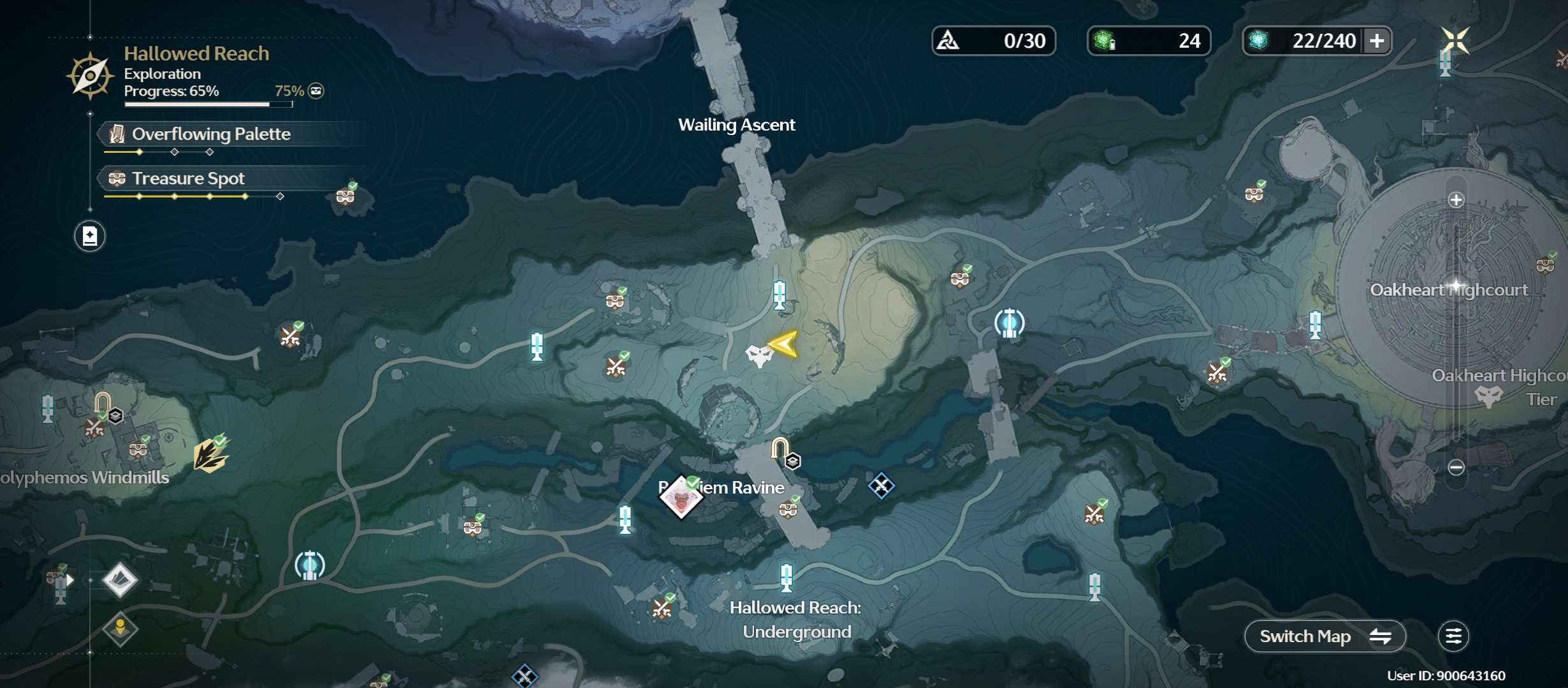 Location in cave (Underground), Northeast from "Requiem Ravine" or South from "Wailing Ascent" bridge.