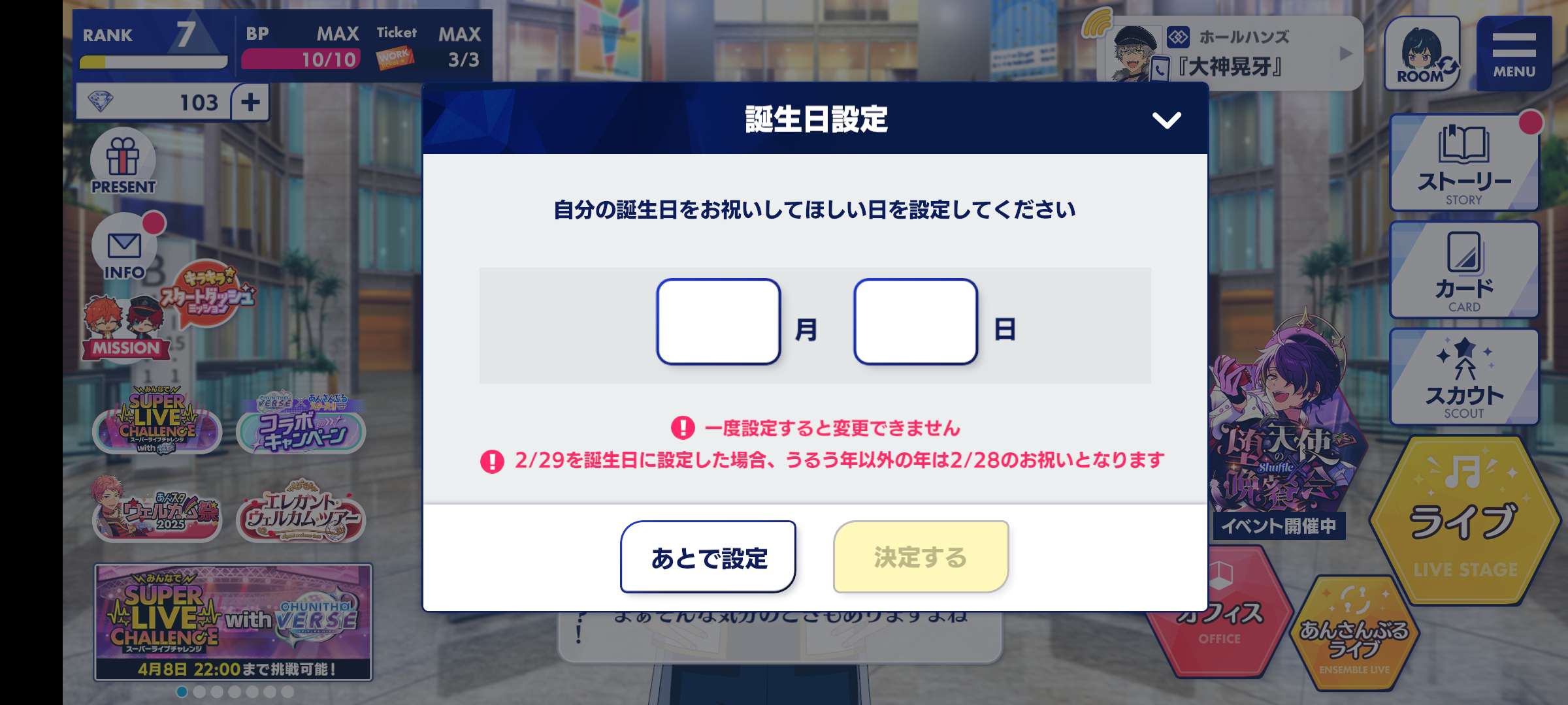 Play song 4 mode hard ini pun blm score S+, Bday unset, ada peluit 100, story aman.