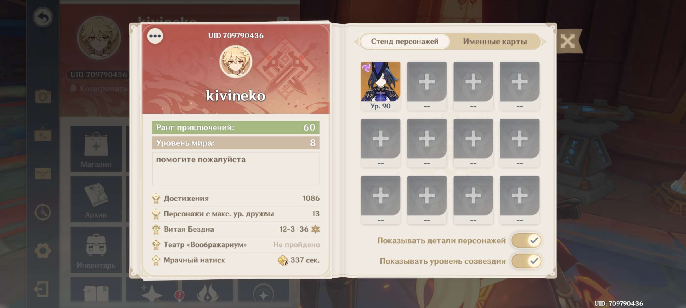 вообще для 60 ранга аккаунт у меня слабоват и прям кучи прокачанных персов у меня нет, ибо скука это смертная их качать, но те, кто у меня вкачан закрывают мне бездну на 36, хоть иногда не так стабильно как хочется