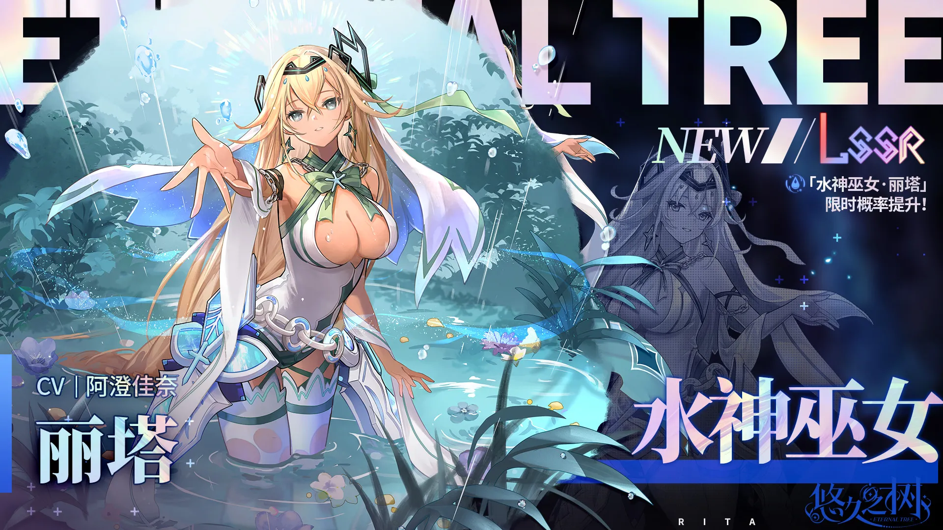 2月9日 维护后 - 3月4日 12:00,「水神巫女·丽塔」限时UP许愿池即将上线。全新水属性LSSR稀有度角色「水神巫女·丽塔」可在本许愿池邂逅获得,且邂逅概率限时提升!