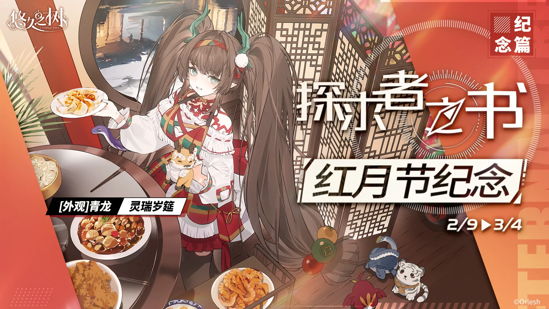 2月9日 维护后 - 3月4日 12:00,探求者之书·红月节纪念登场!完成日常、周常任务可以获得调查值提升探求者之书等级。探求者之书到达指定等级后,可获得限时许愿券·马跃新程*1、绚晶石、养成素材等丰厚奖励!