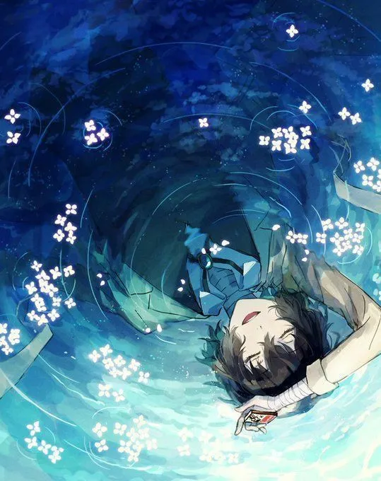 #Dazai #DazaiOsamu #TrenchCoat #Bandage #Flowers #Water #Brown #BungoStrayDogs #Anime #Art #Fanart #Husbando