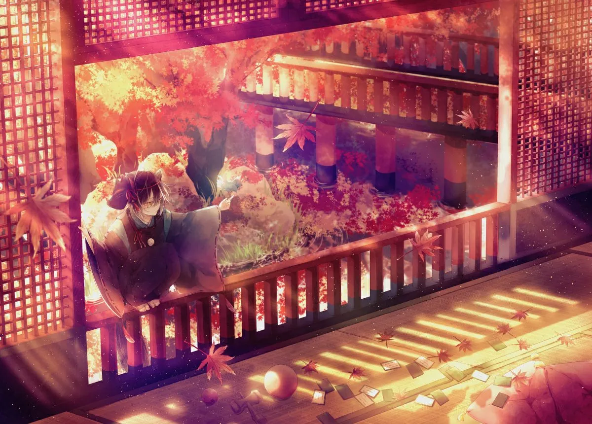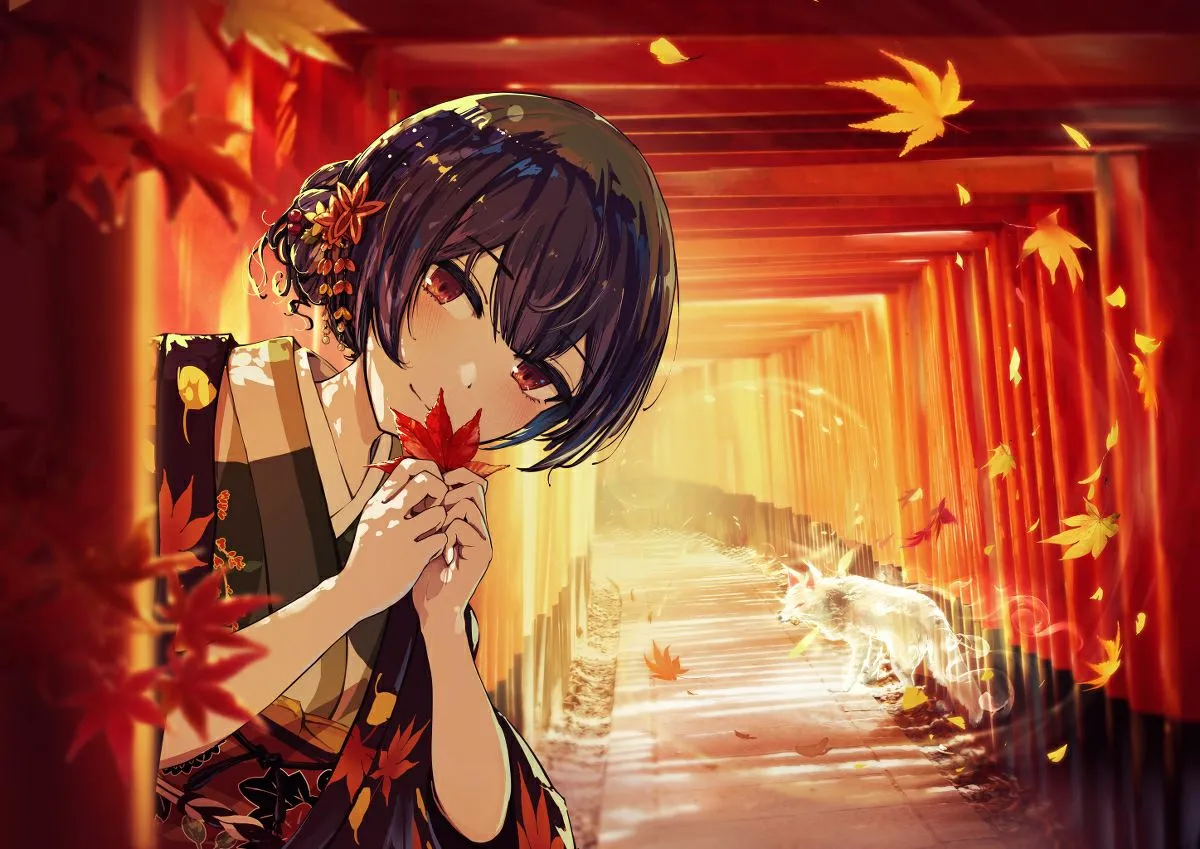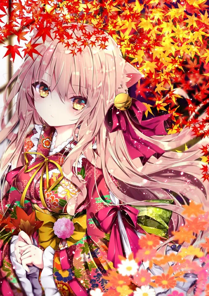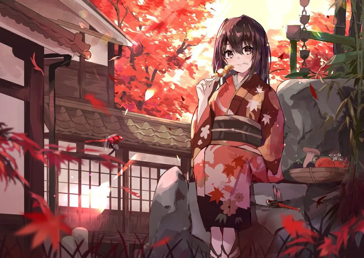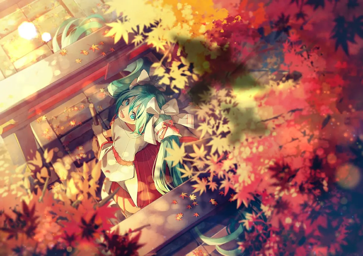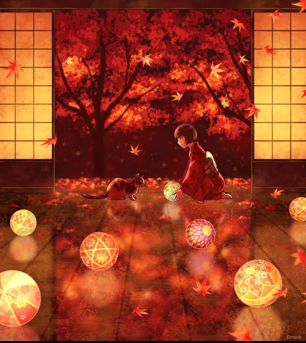 #Autumn #Fall #Collection #Kimono #Leaves #Red #Orange #Yellow #Uniform #Book #Cat #Balls #Lanterns #Lantern #HatsuneMiku #Vocaloid #Mochi #Fox #Umbrella #Inn #Art #Fanart #Anime