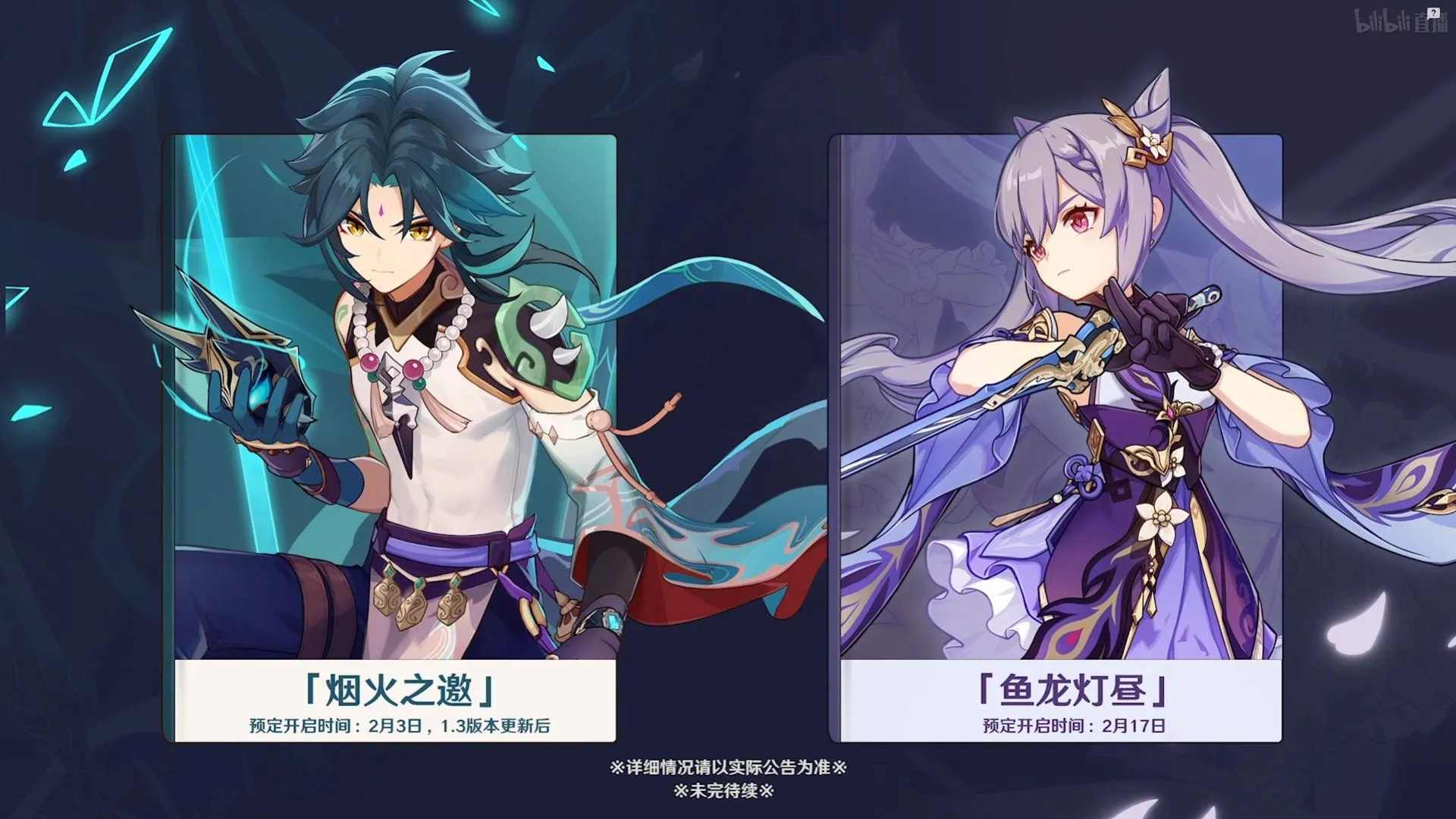 It has been confirmed that the 1.3 update will come the 2/3.(2nd February) first with Xiao and his story quest and keqing rate up banner the 17 th with also her story quest , plus multiple events like the lantern festival ,the photograpy plus the tower defense one .