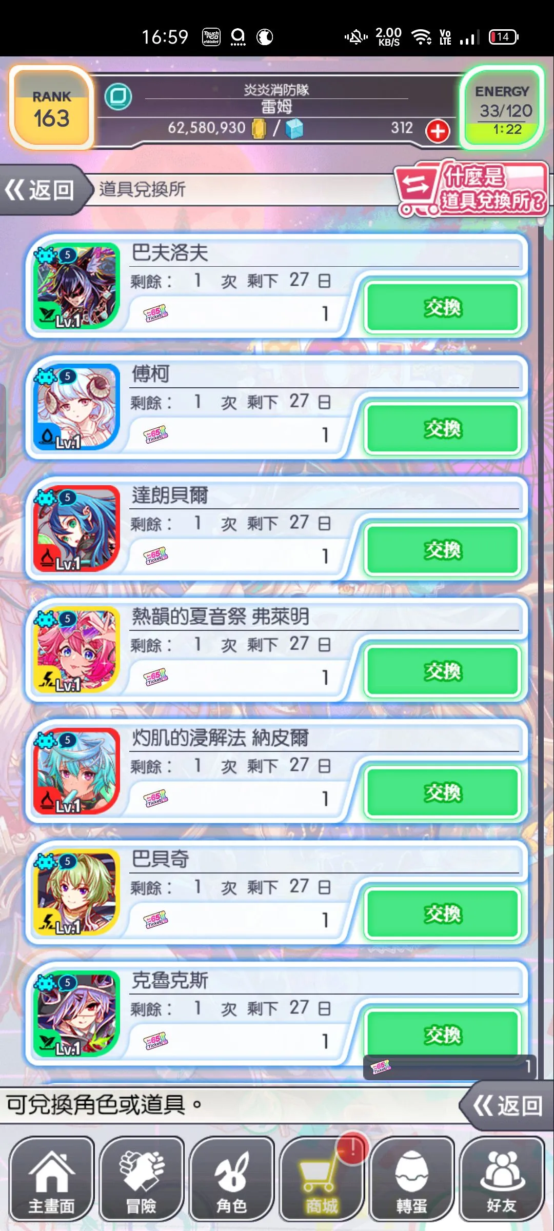 有大大帮忙看下这么多角色哪个有用这个10月65cost的角色