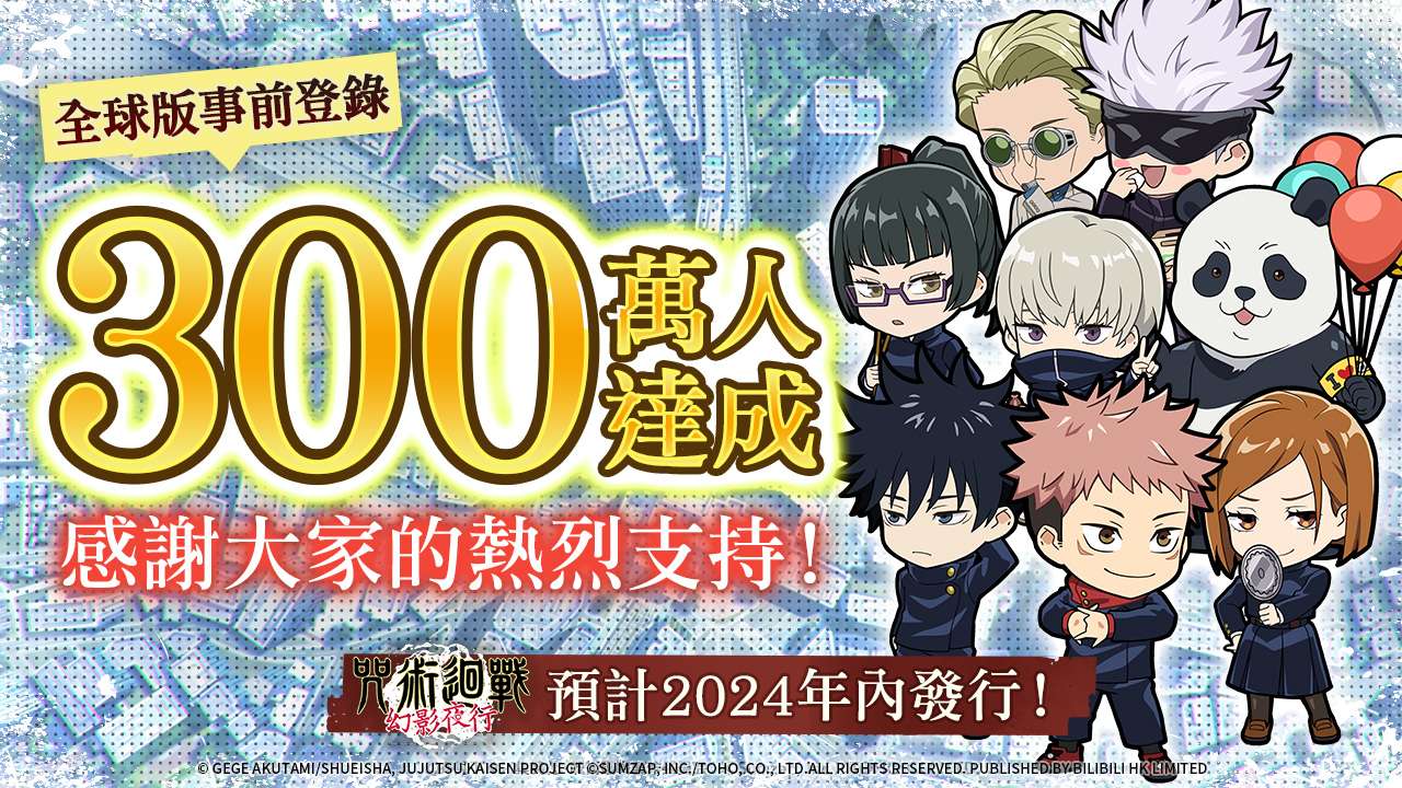 #咒術迴戰幻影夜行 預約人數已達成【300萬人】!感謝大家的支持與期待,本次追加的全服獎勵有: