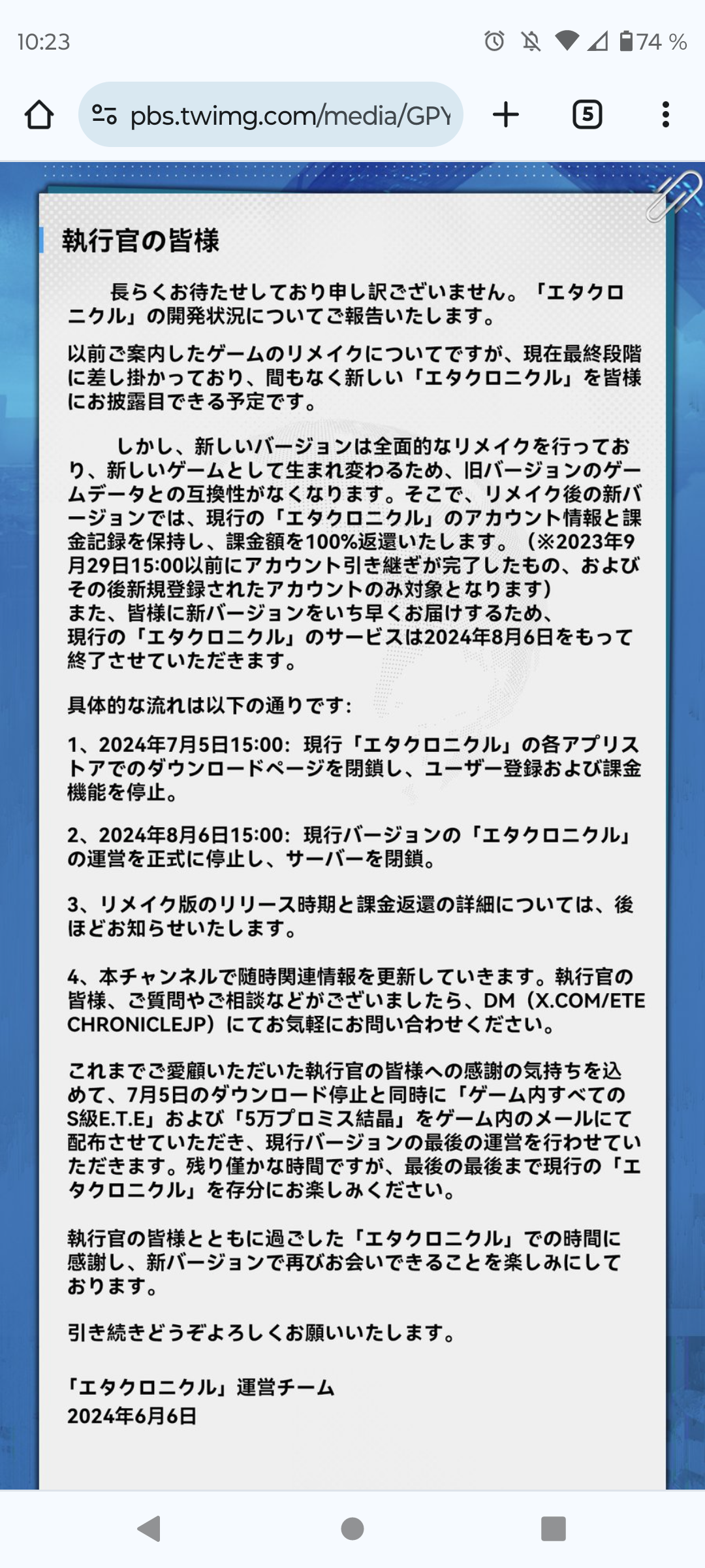 I'm a player of the currently featured E T E. Chronicle :RE Game in the gacha here. The thing is therse's not much information available to the chapters and in general. I could share some light