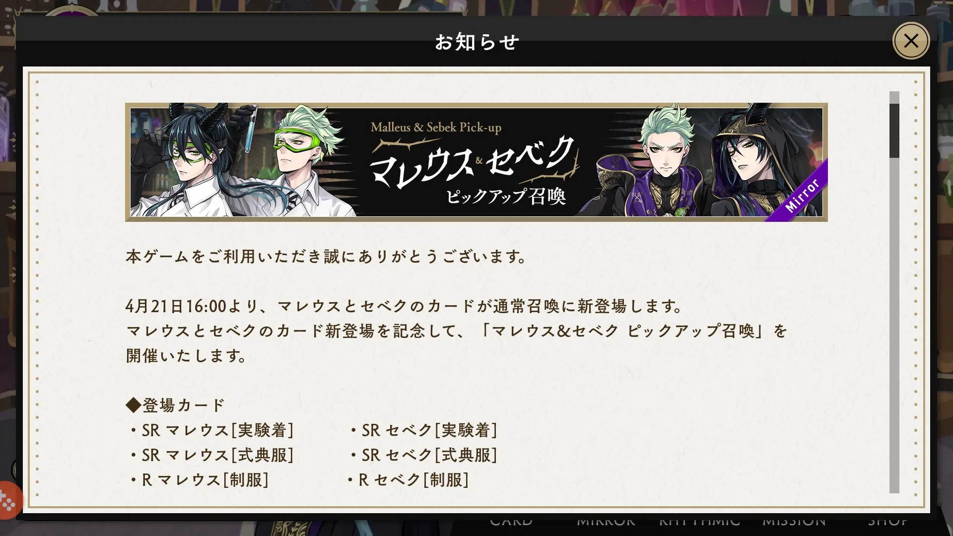 "Rook Pickup Summon" will be held to commemorate the appearance of SSR Rook [dormitory clothes].