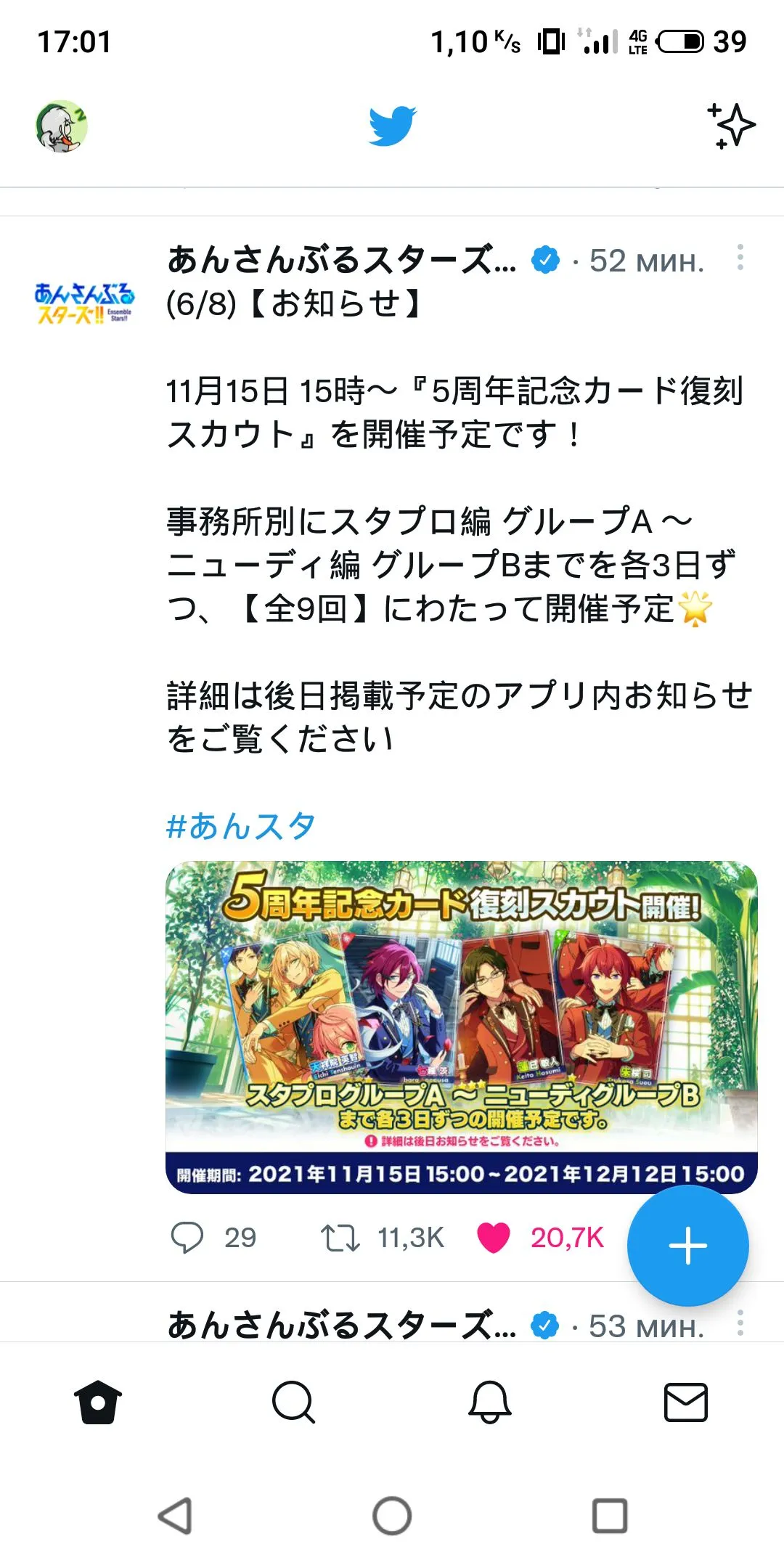 It was one month. I took a break from EnSta, I didn't play and just took login bonuses and did free scouts. And actually those free scouts are going really well![[開心]](/cdn/img/transparent.png)