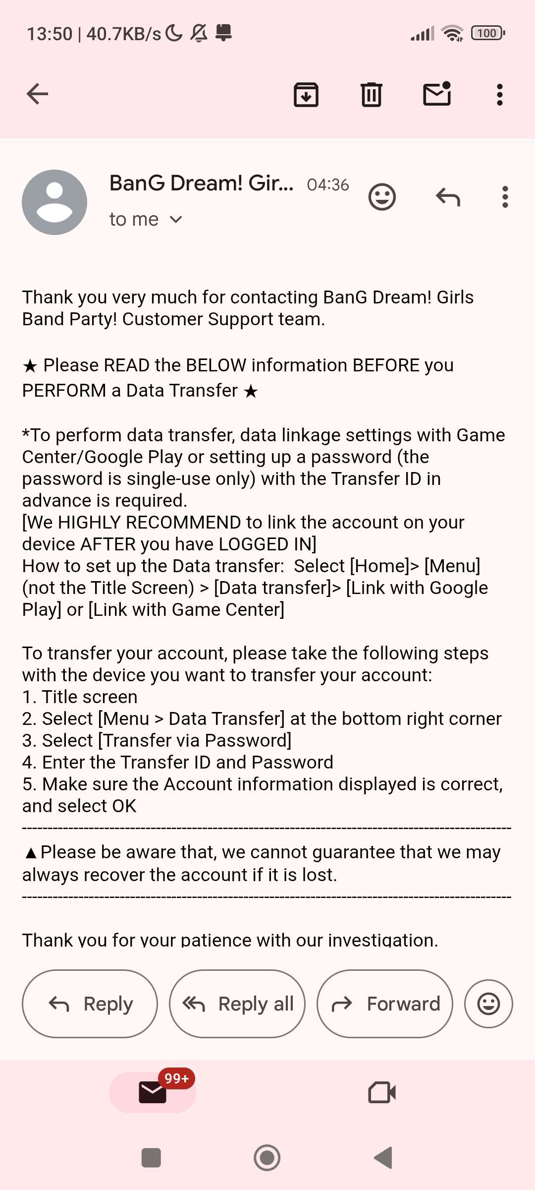 Кто-нибудь знает как это решить? Трансфер я уже использовала, а игра не дает мне зайти чтобы я новый создала