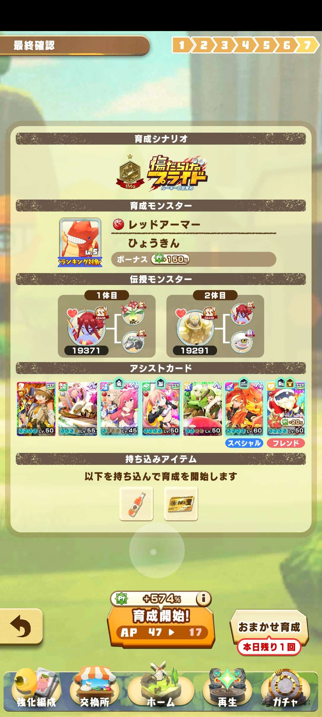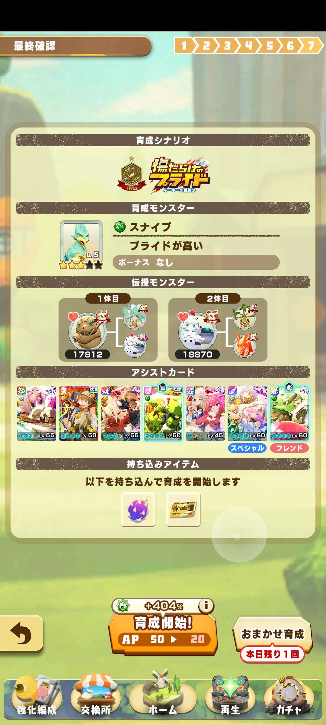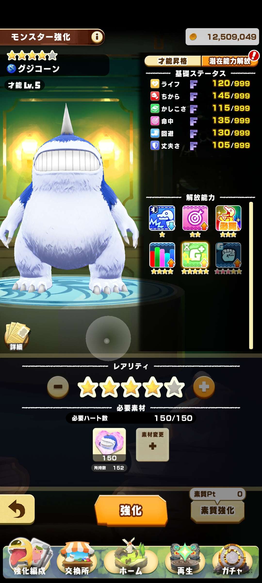 人氣50、鯨+血400、力400、用道具3次