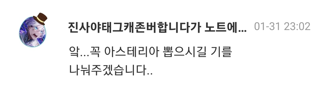 하고프하세요 2025-02-03 19:08 노트(526) 감사합니다... 저도 이제 아스테리아 오너...!! 제발 발렌타인데이에 왕녀님이 안오시길 바랄뿐입니다....ㅎㅎ........