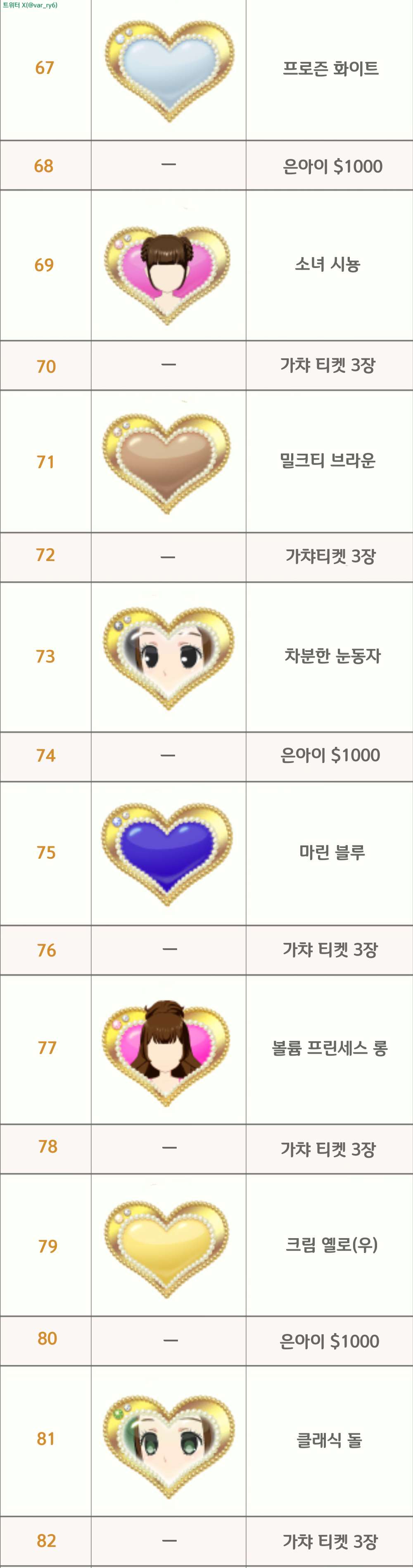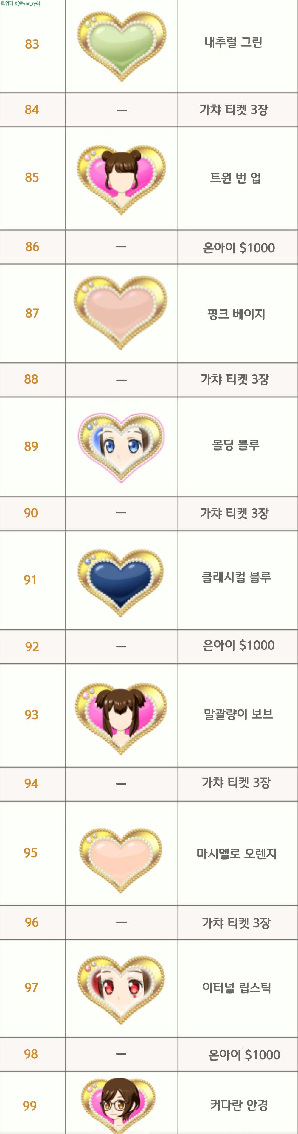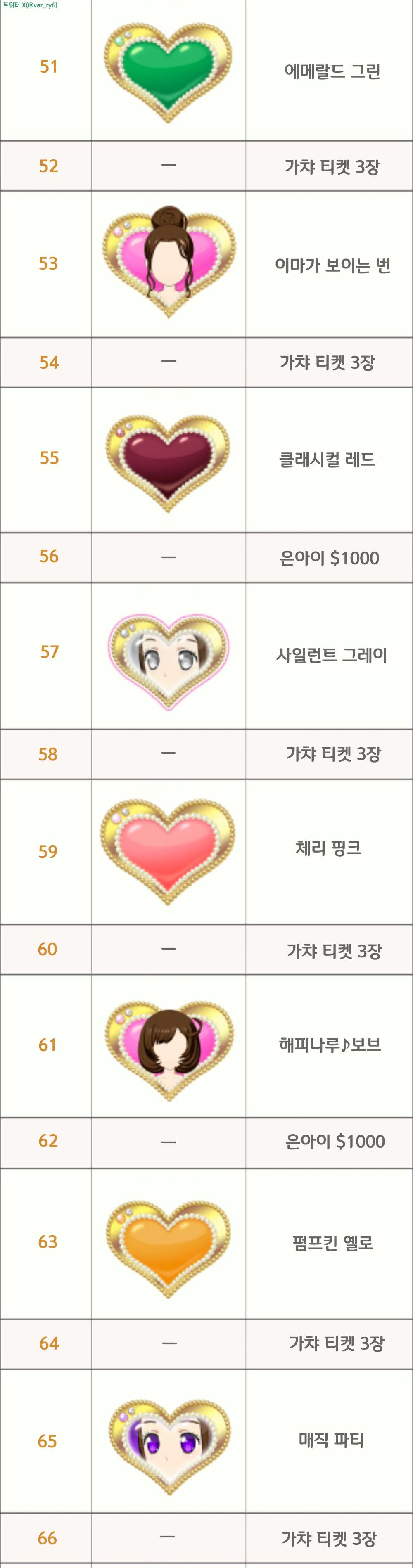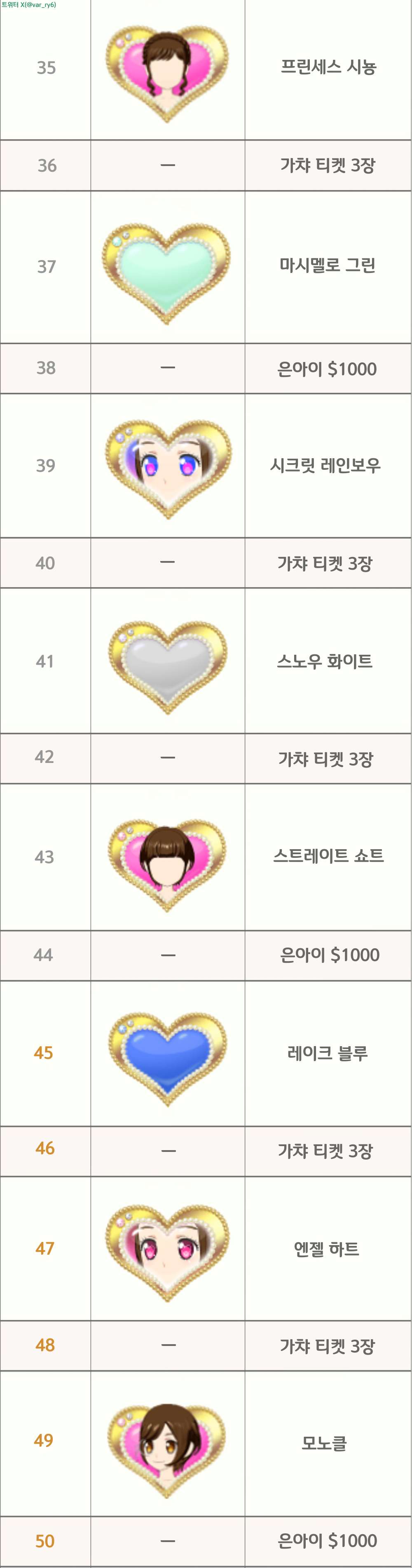 랭크업 보상 공유2~130 130이 최종랭크
