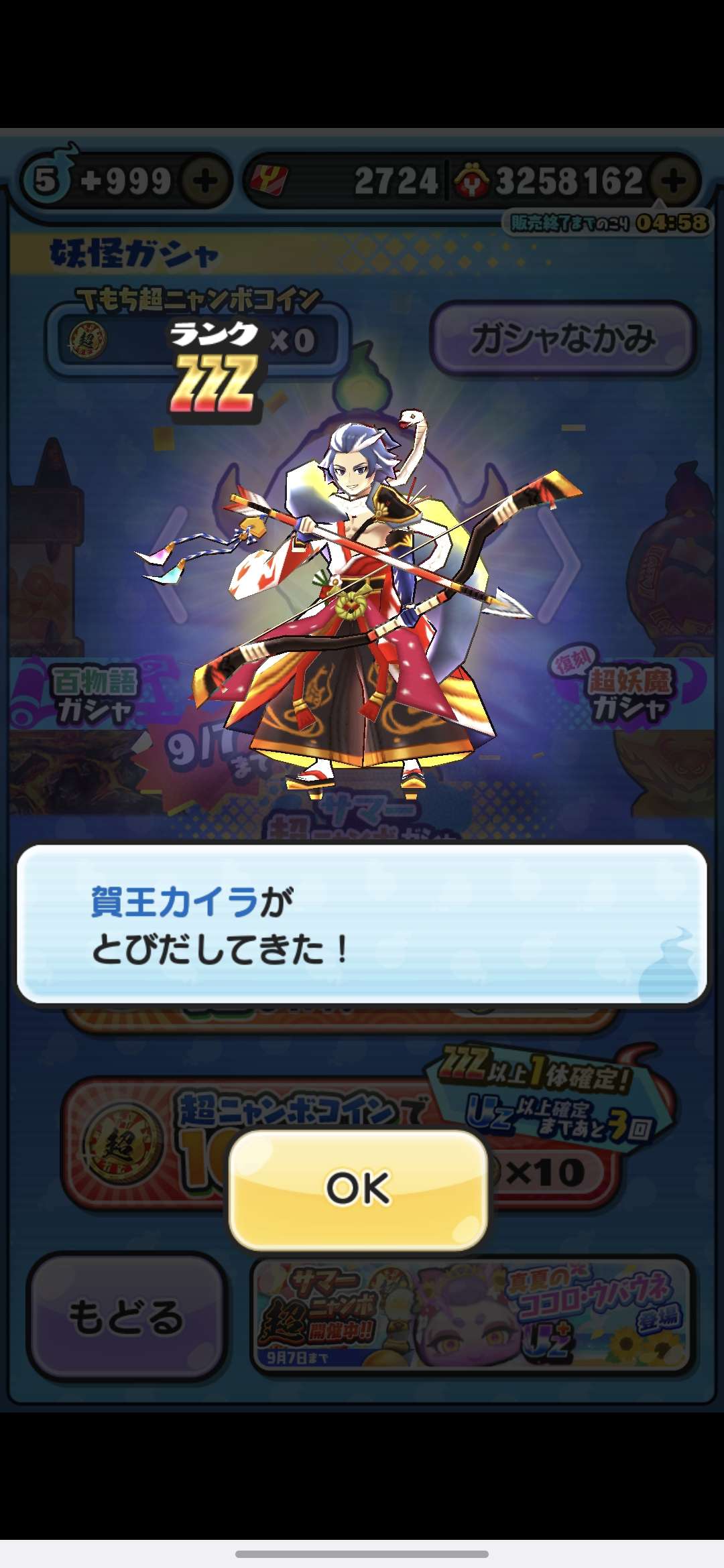 最近プレイしていない場合は、欲しいZZランク妖怪が手に入る!