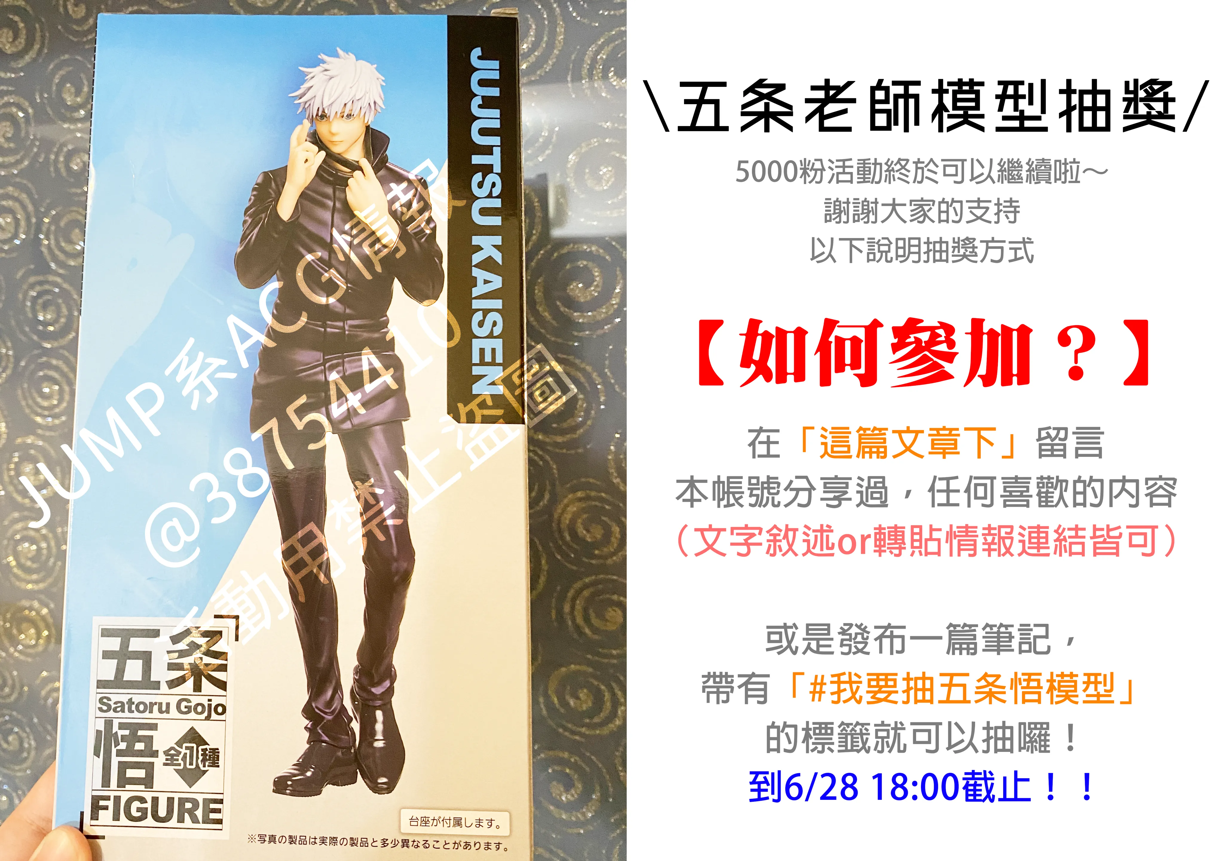 廢話不多說讓我們直接切入活動說明吧!這次送的是TAITO出品的「 #咒術迴戰 」五条悟的景品模型